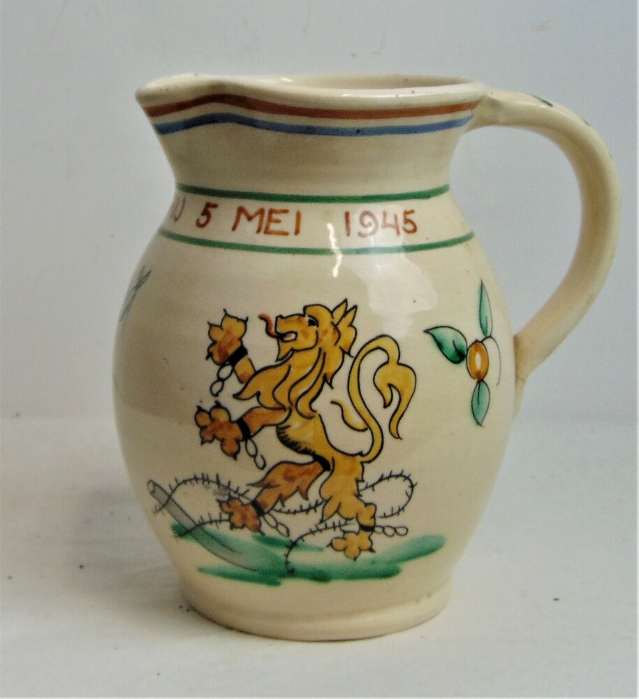 Schenkkan met de tekst : Nederland vrij 5 mei 1945