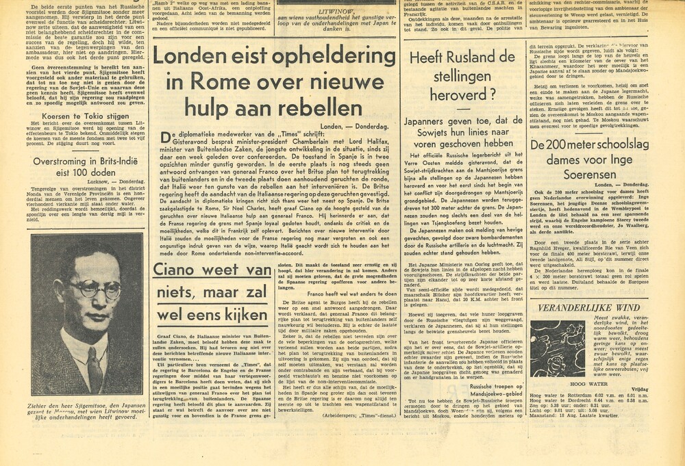 "Haagsche Courant" van " Maandag 1 augustus 1938" "N...