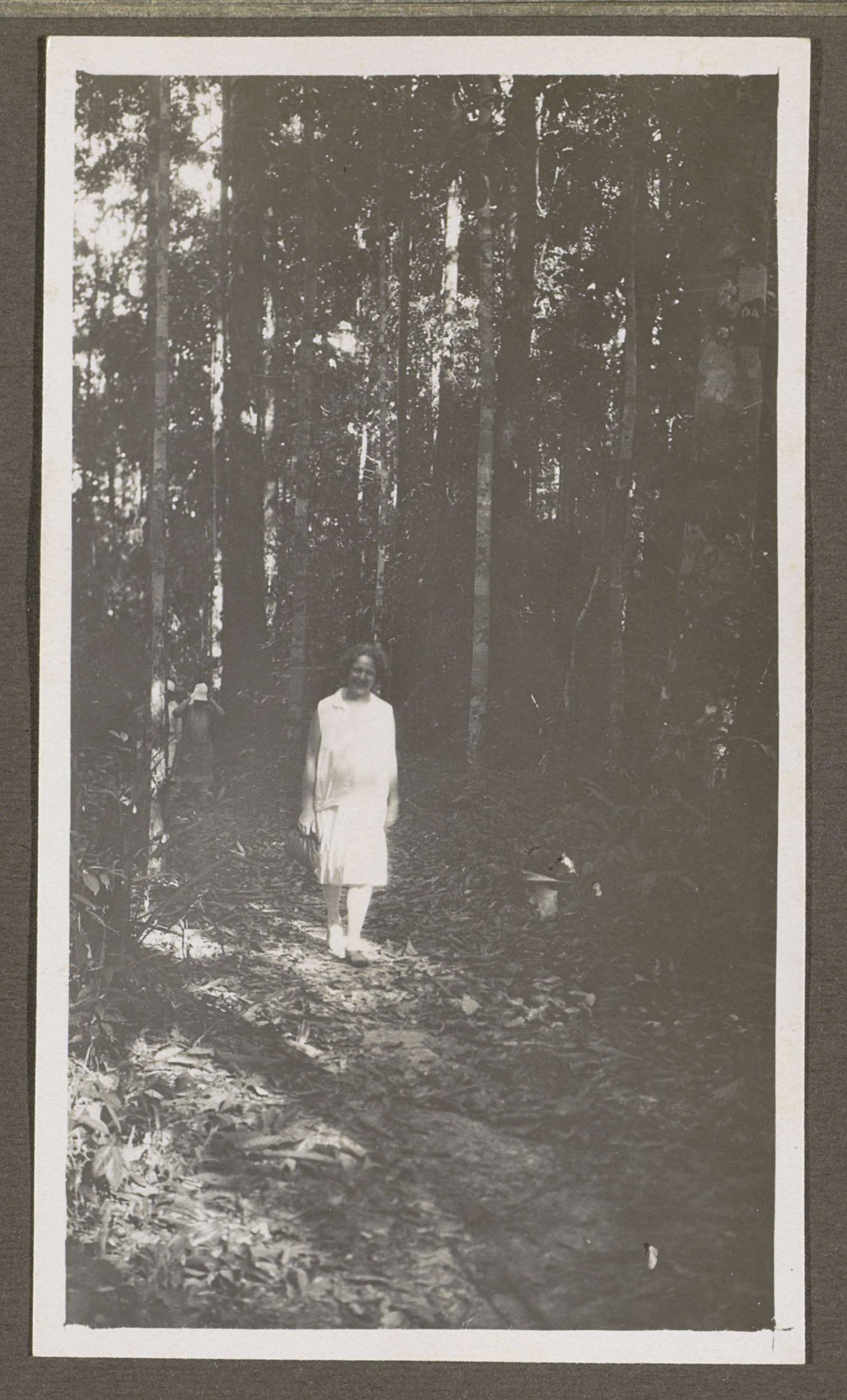 Vrouw poserend op een bospad