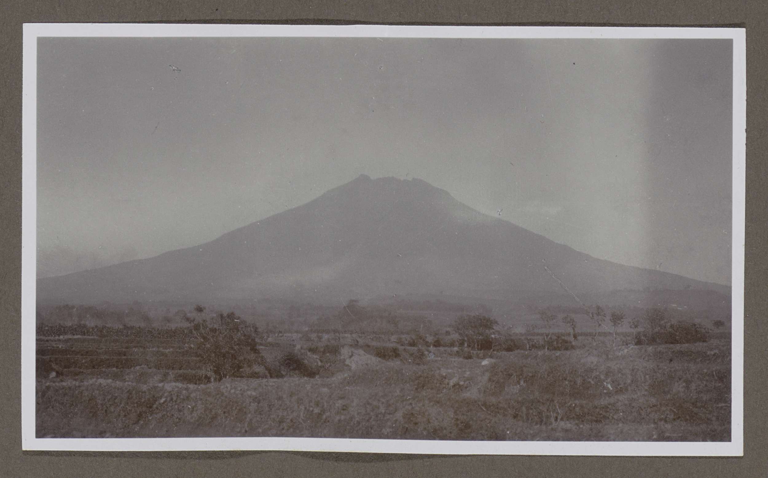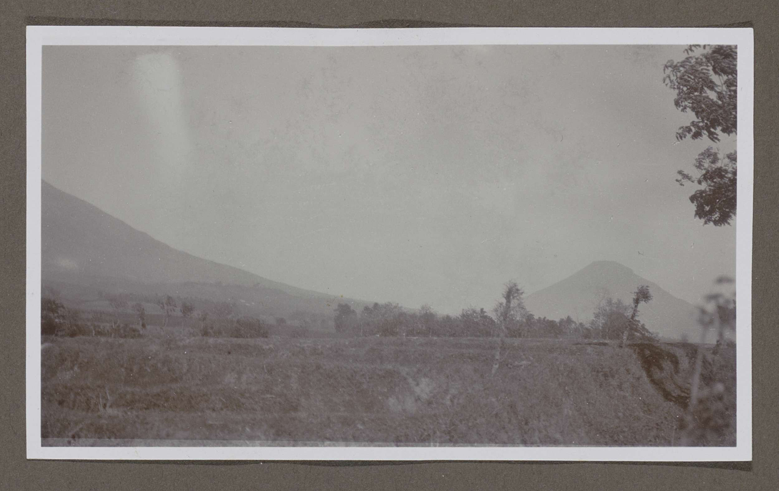 Landschap met op de achtergrond twee vulkanen