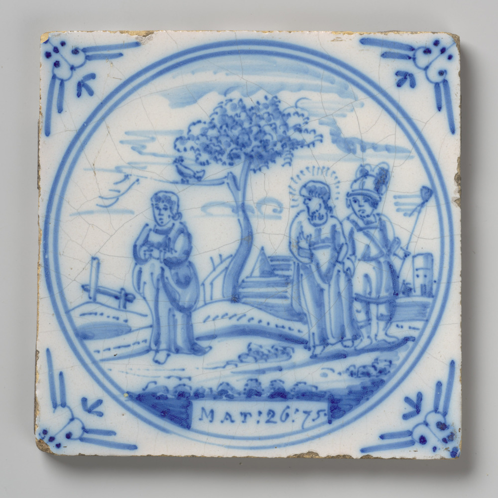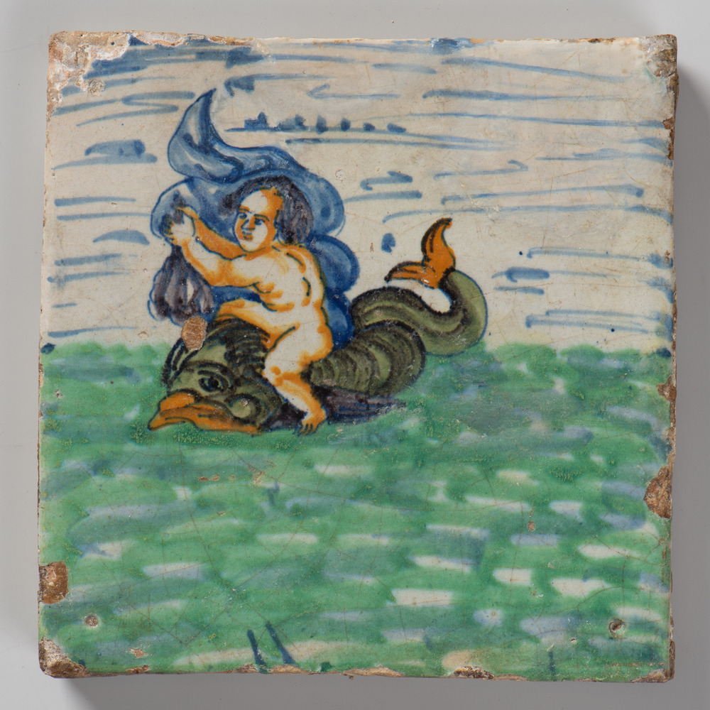 tegel van keramiek met tinglazuur, voorstellende: He...
