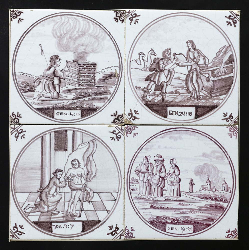 Tegelveld bestaande uit vier tegels van keramiek in ...
