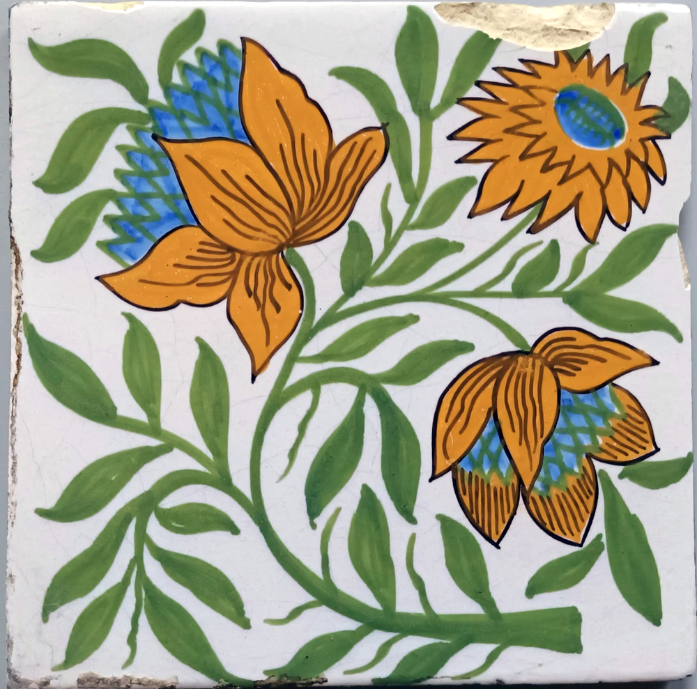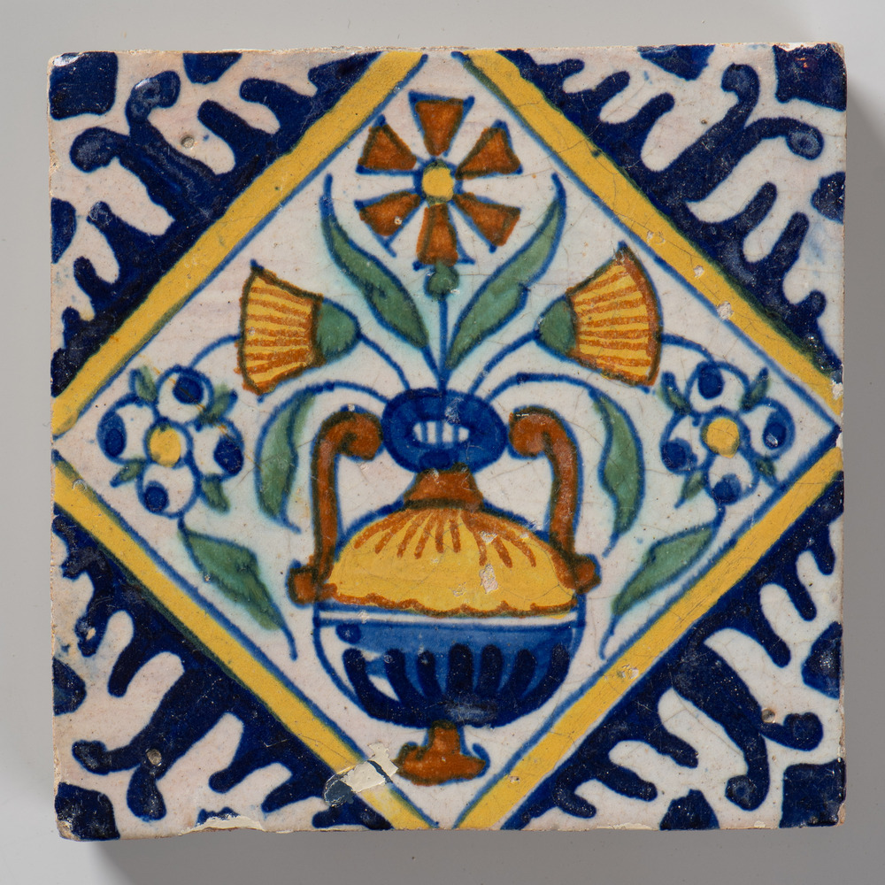 Tegel van keramiek met tinglazuur, voorstellende: or...