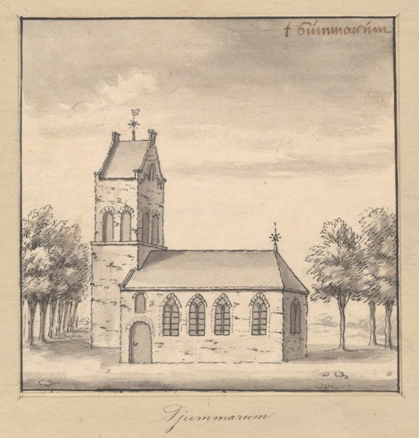 Gezicht op Baard in Baarderadeel langs de terp met d...