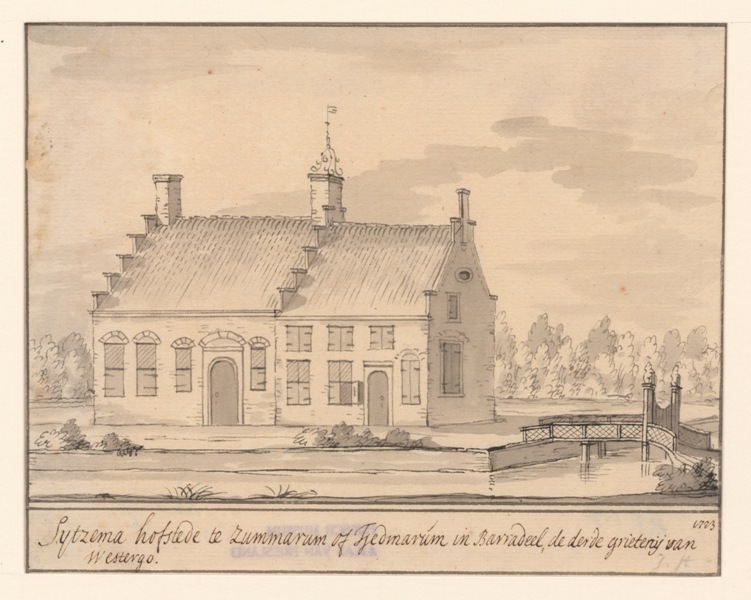 Gezicht op Liauckema-state en op de poort te Sexbierum