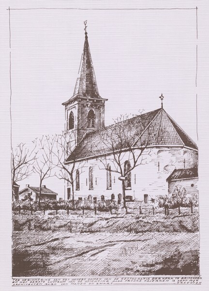 Poort van het afgebroken slot Uniastate en de kerk t...