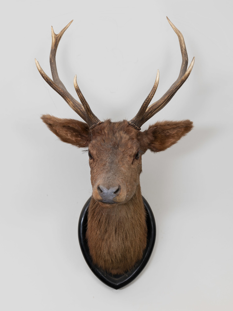 Hertenkop op houten schild