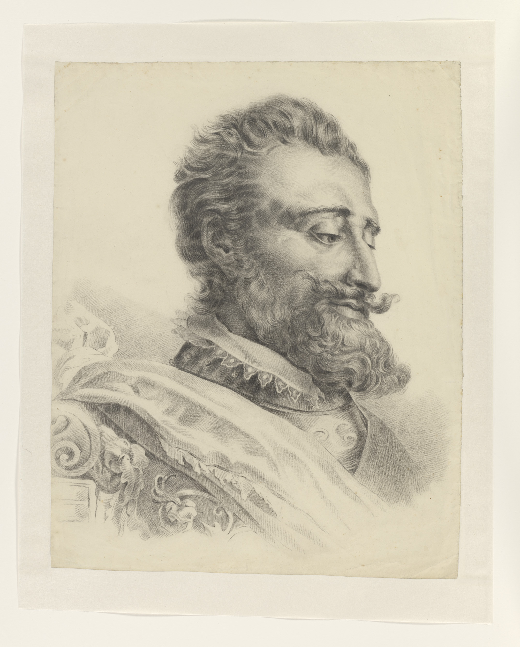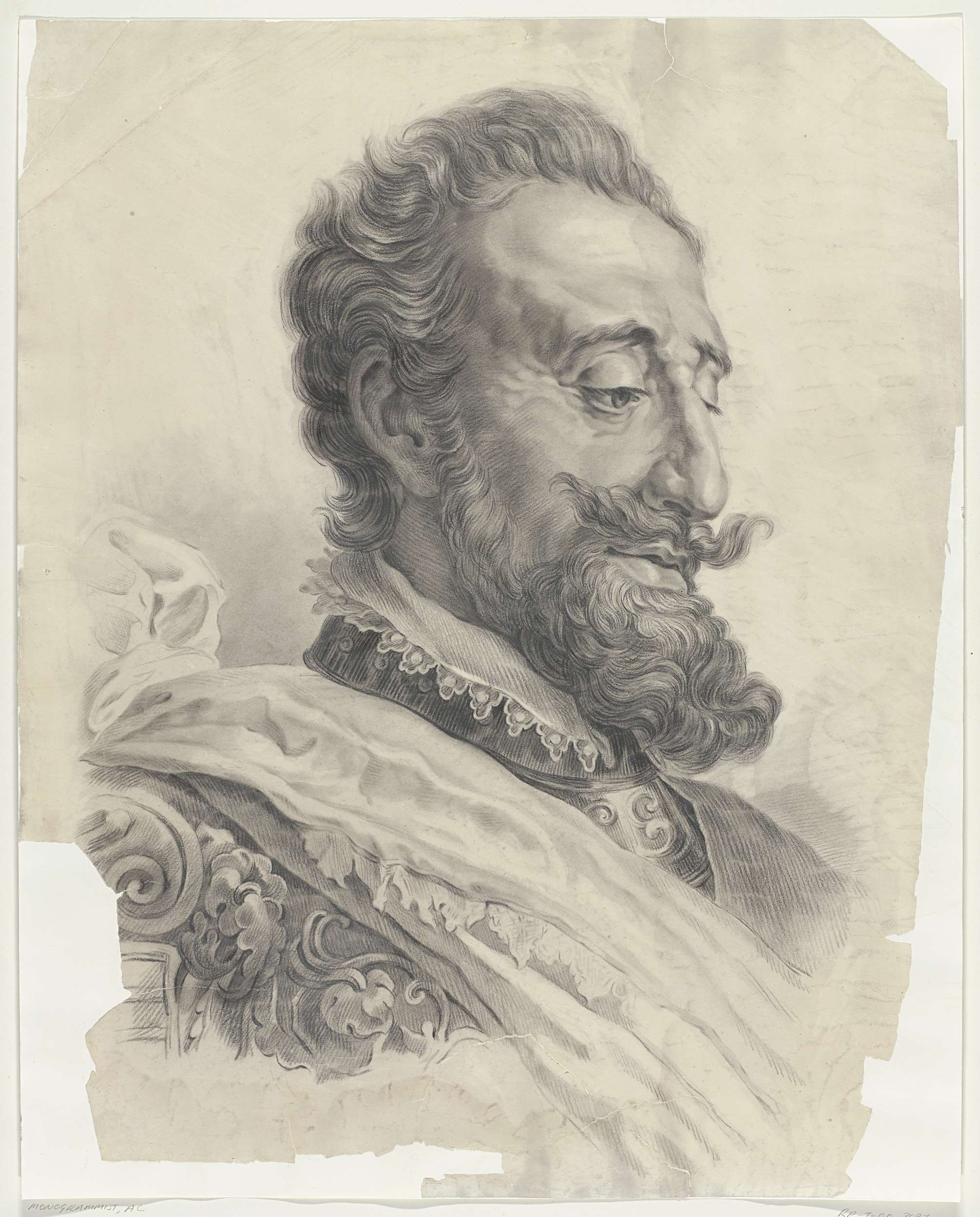Manskop, met baard, naar rechts