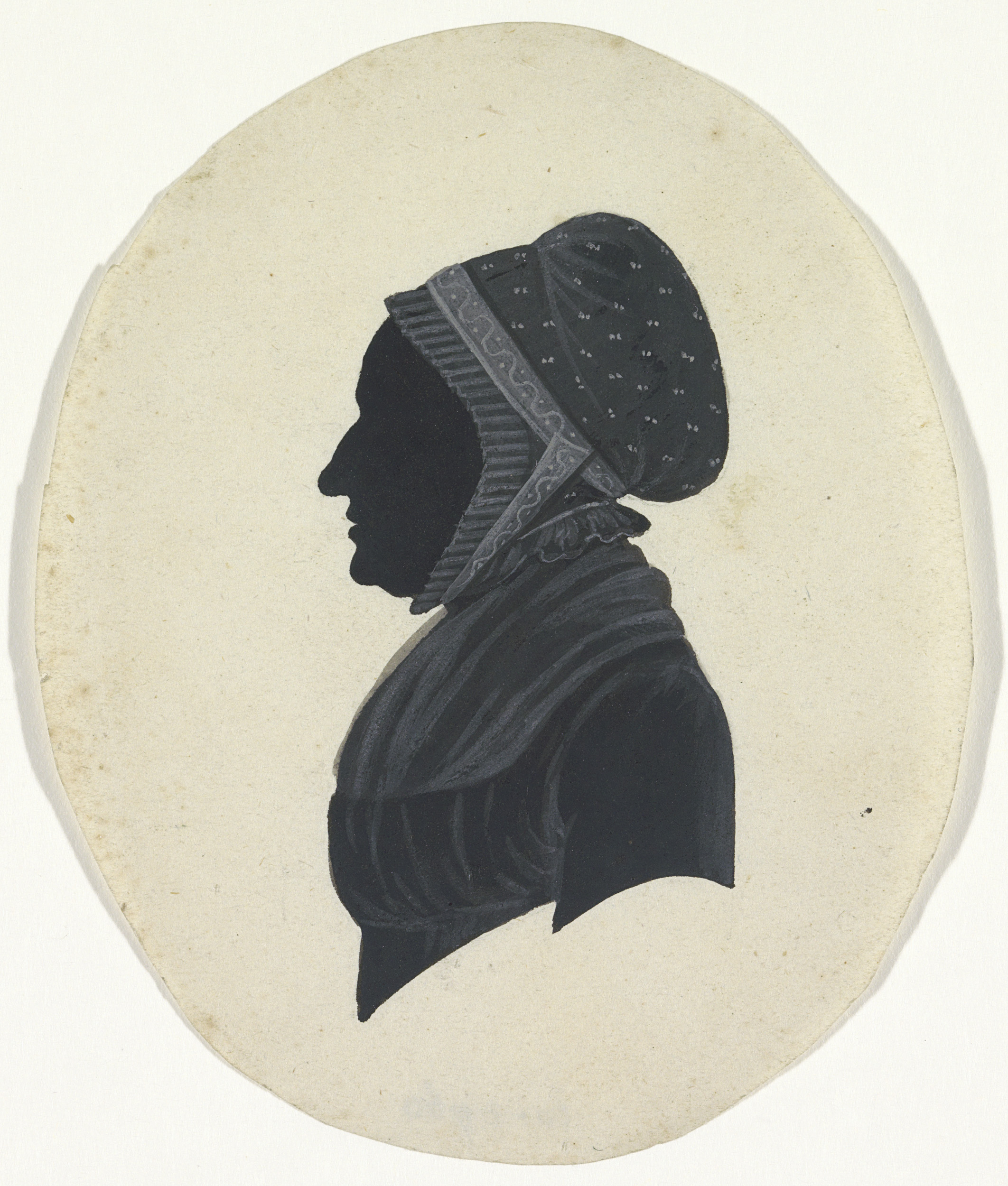 Silhouet van een vrouw, naar links kijkend, waarschi...