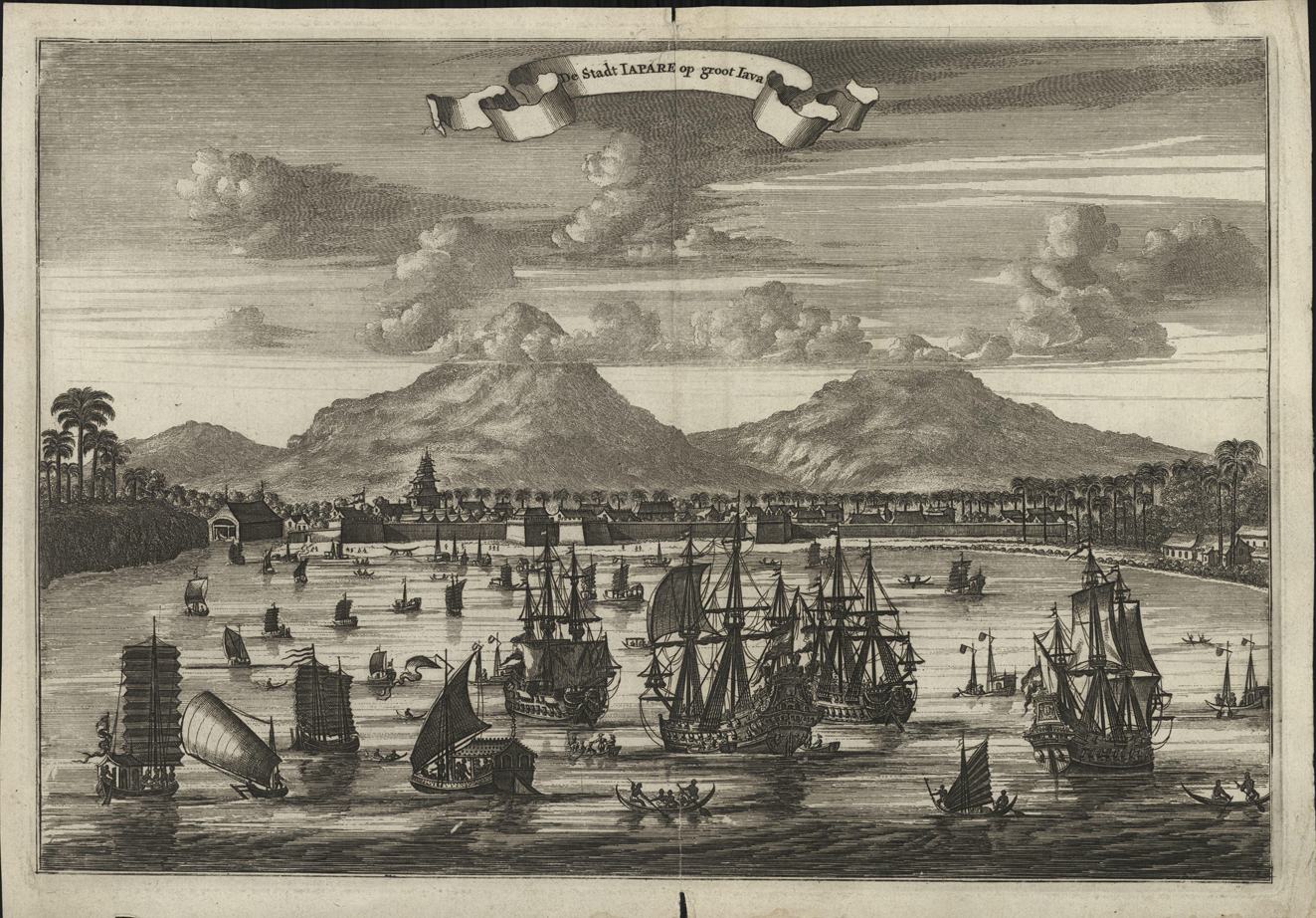 Gezigt van de stad en haven van St. Petrus en St. Pa...
