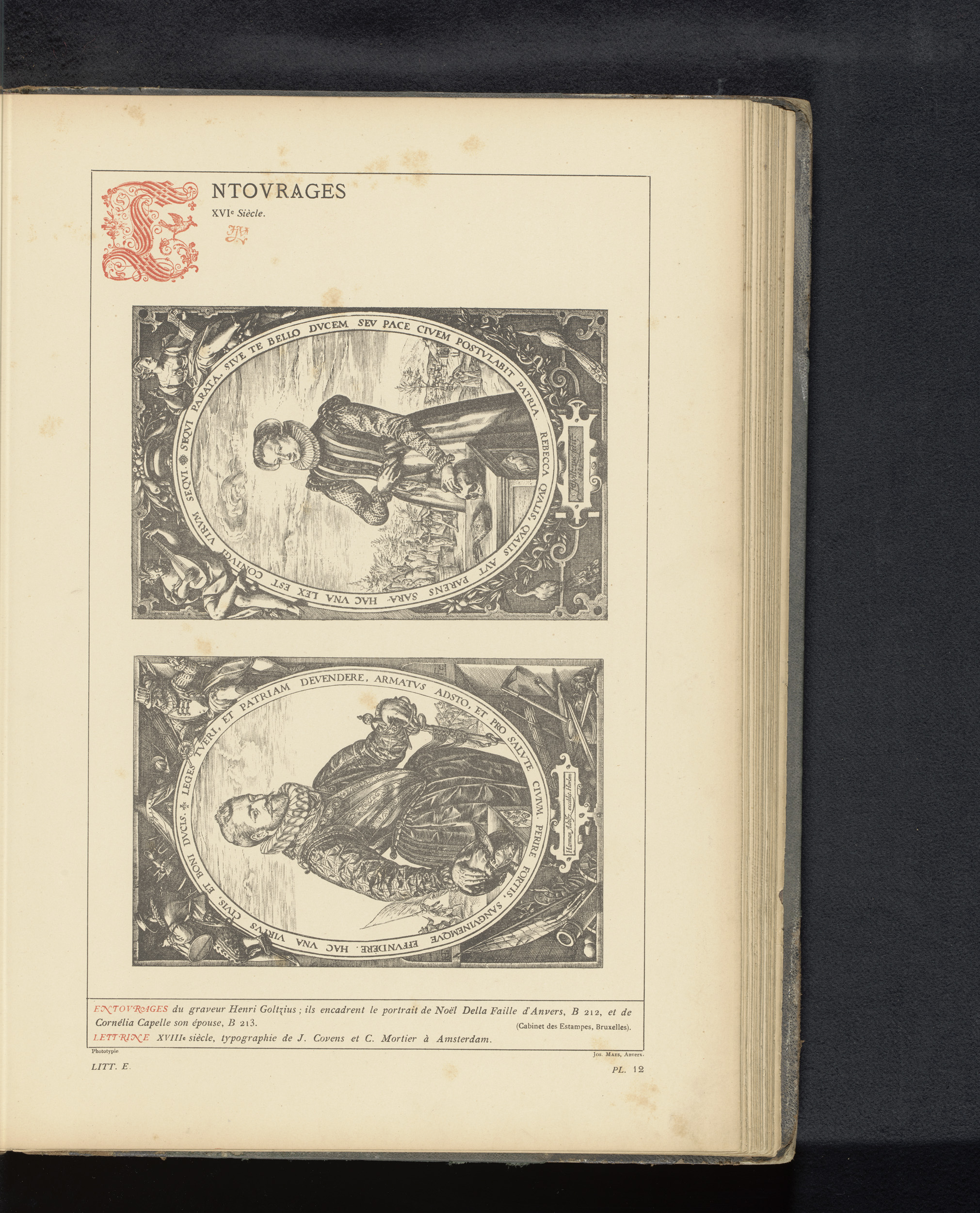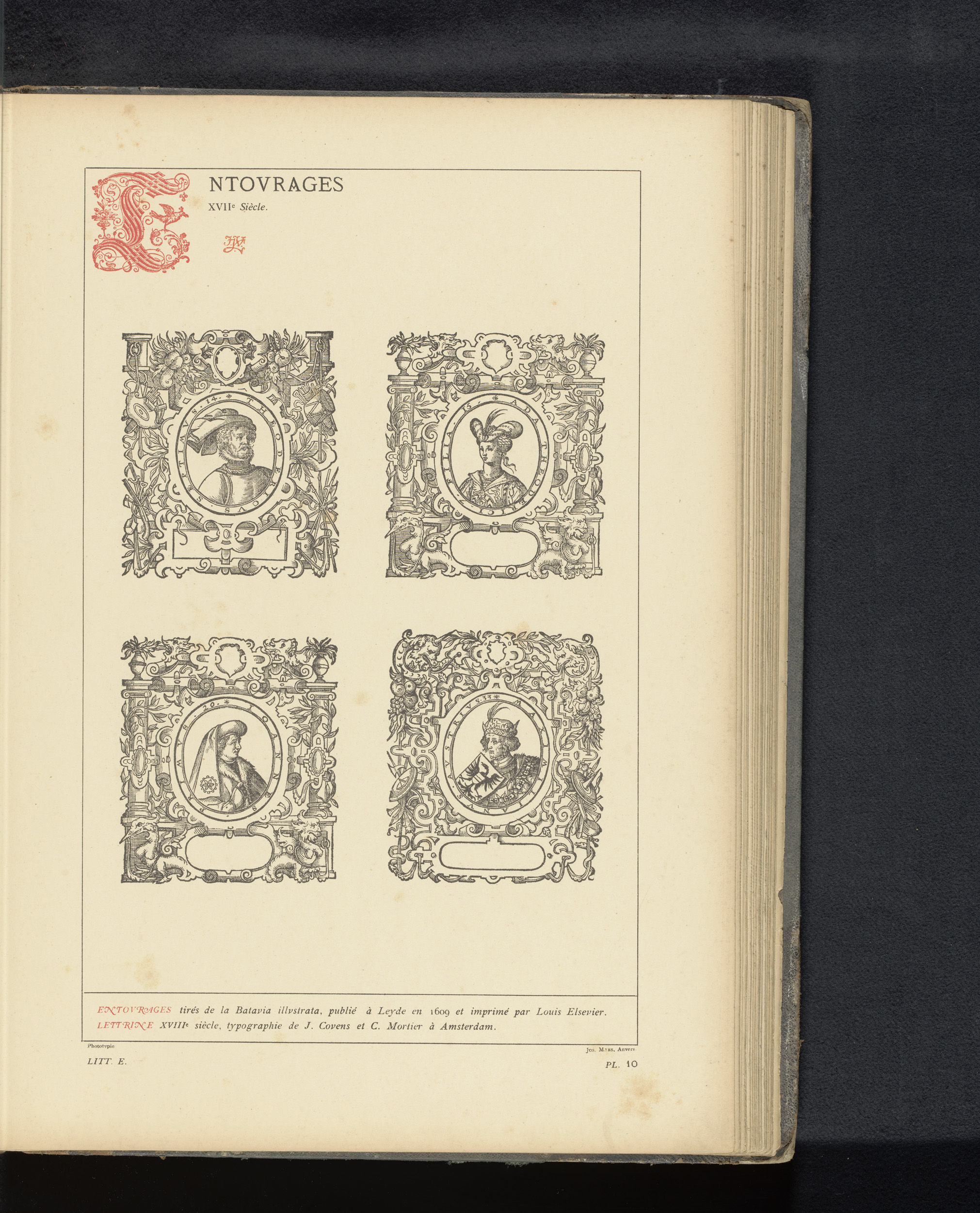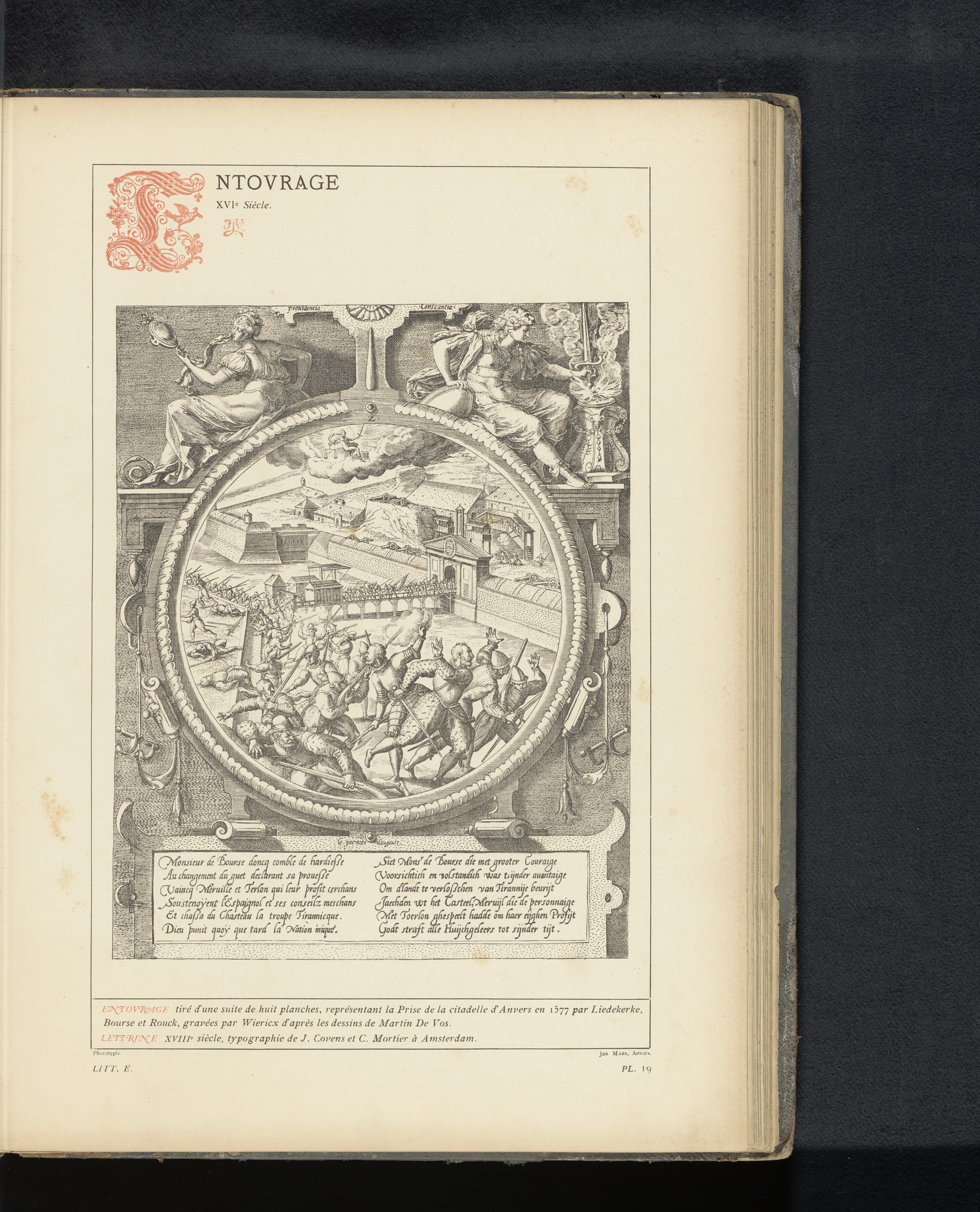 Reproductie van een titelpagina en drie prenten van ...