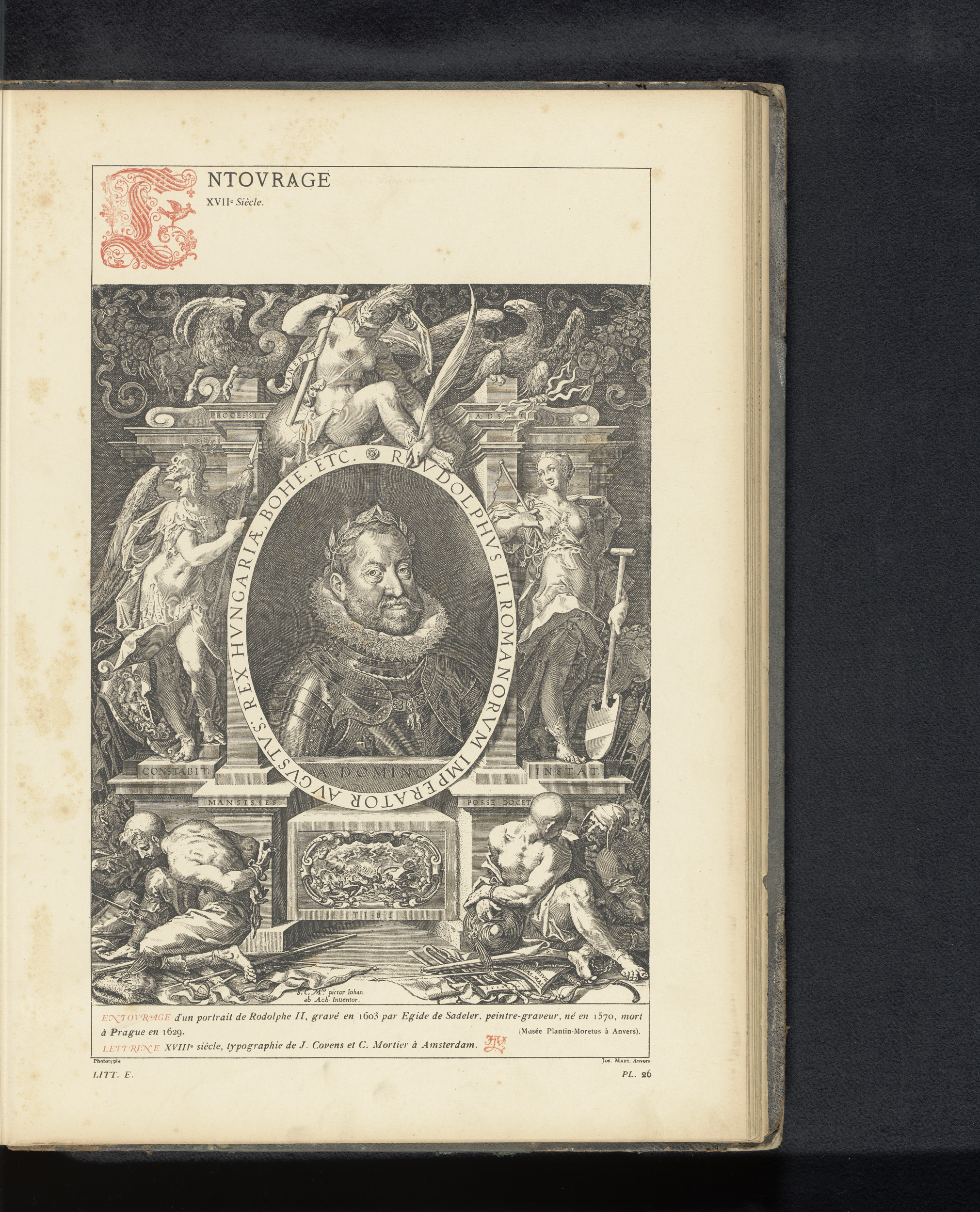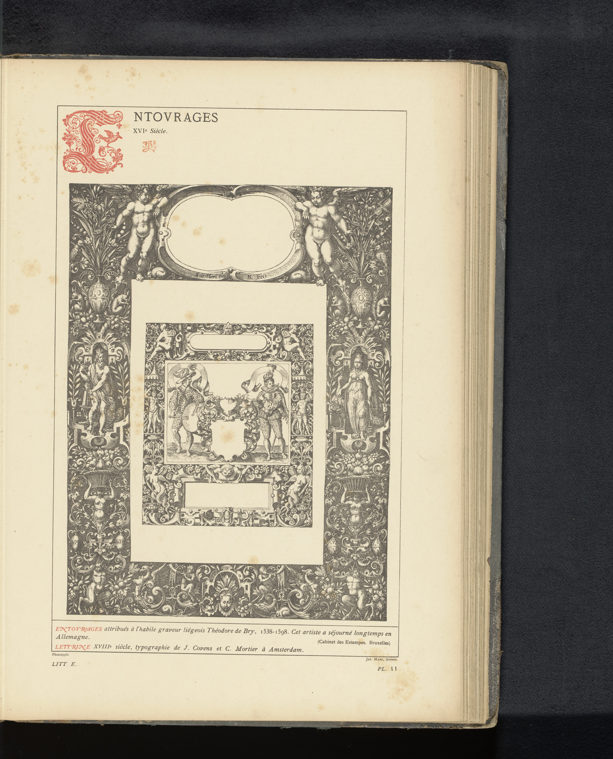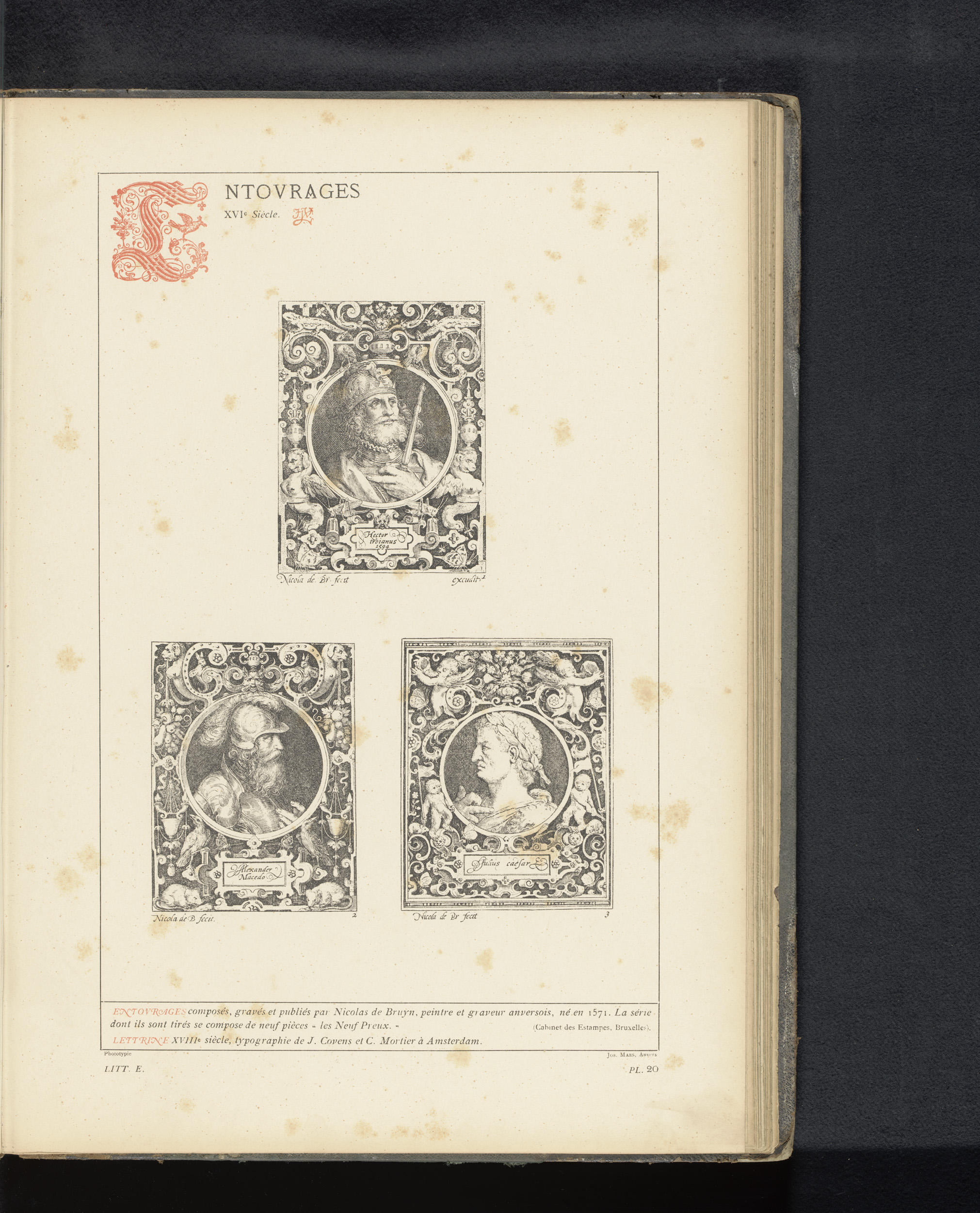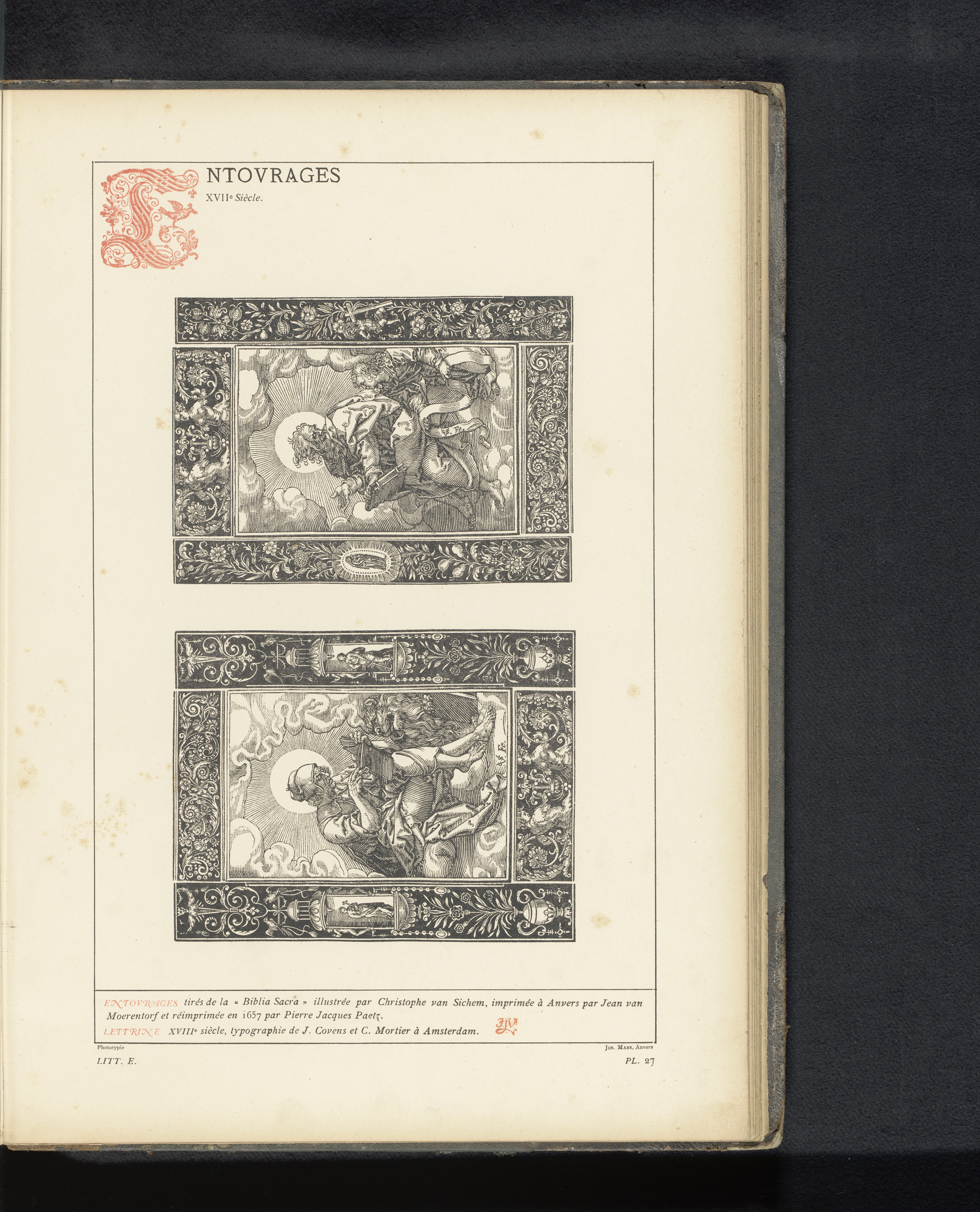 Reproductie van een titelpagina en drie prenten van ...