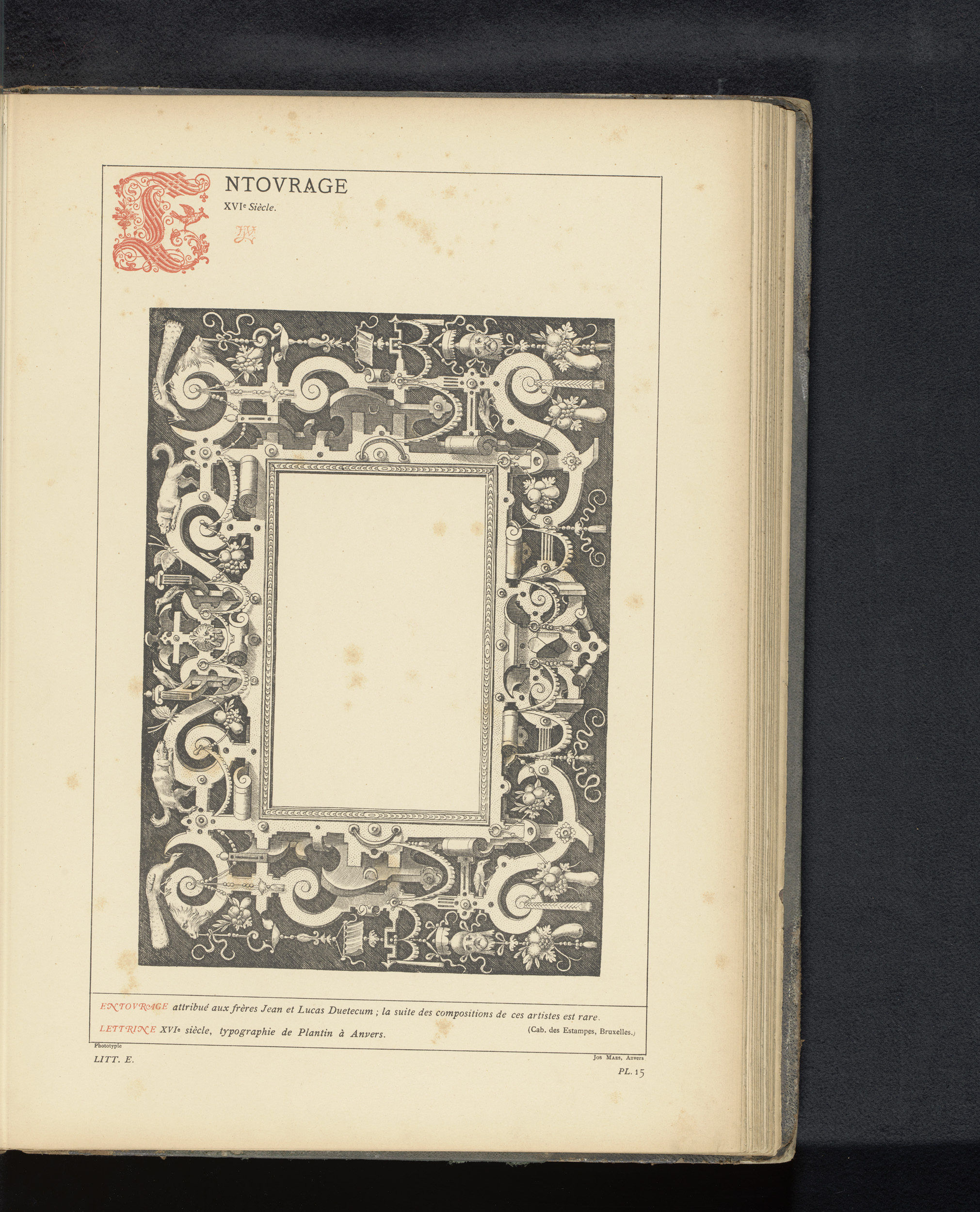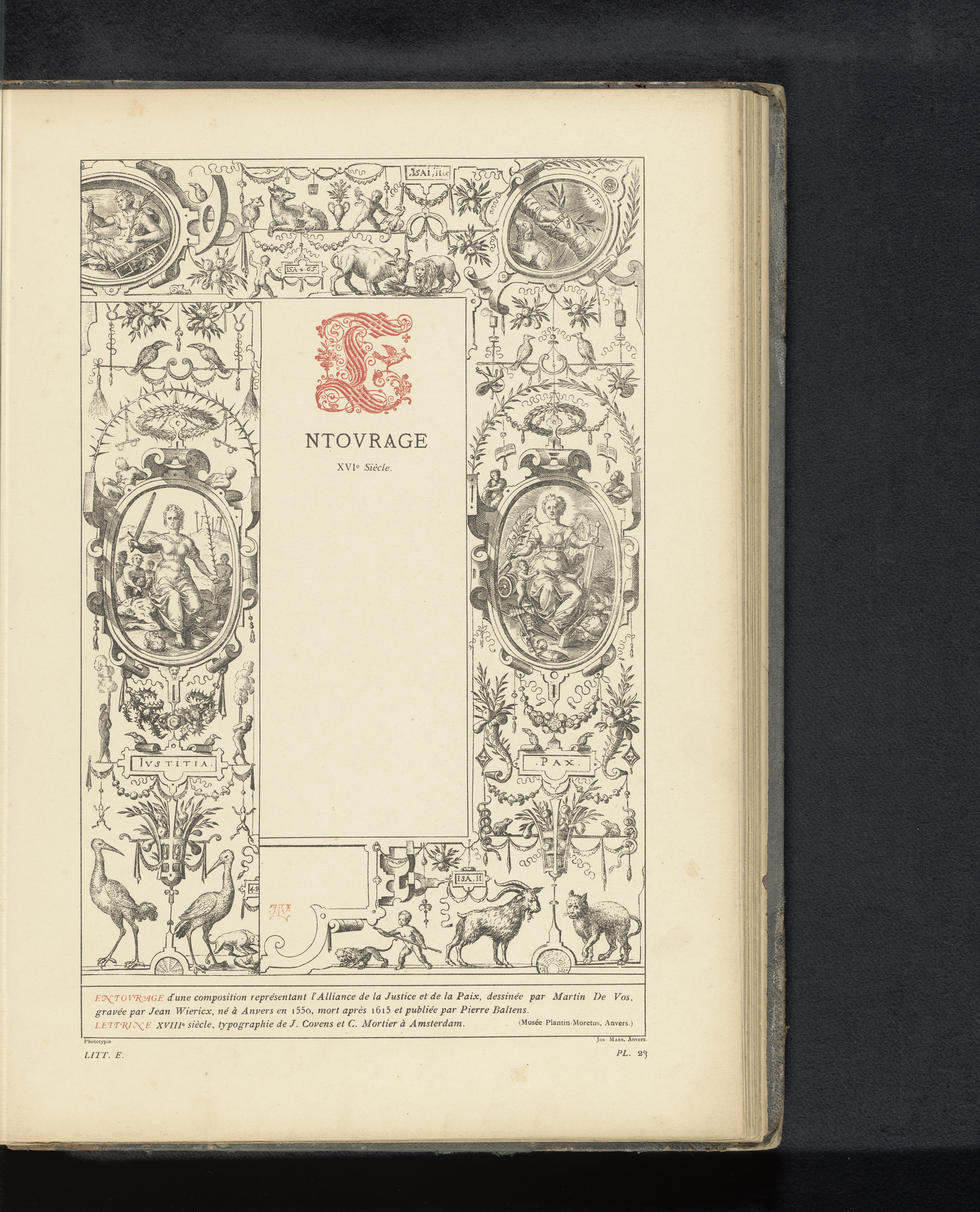 Reproductie van een prent van een rand met grotesken...