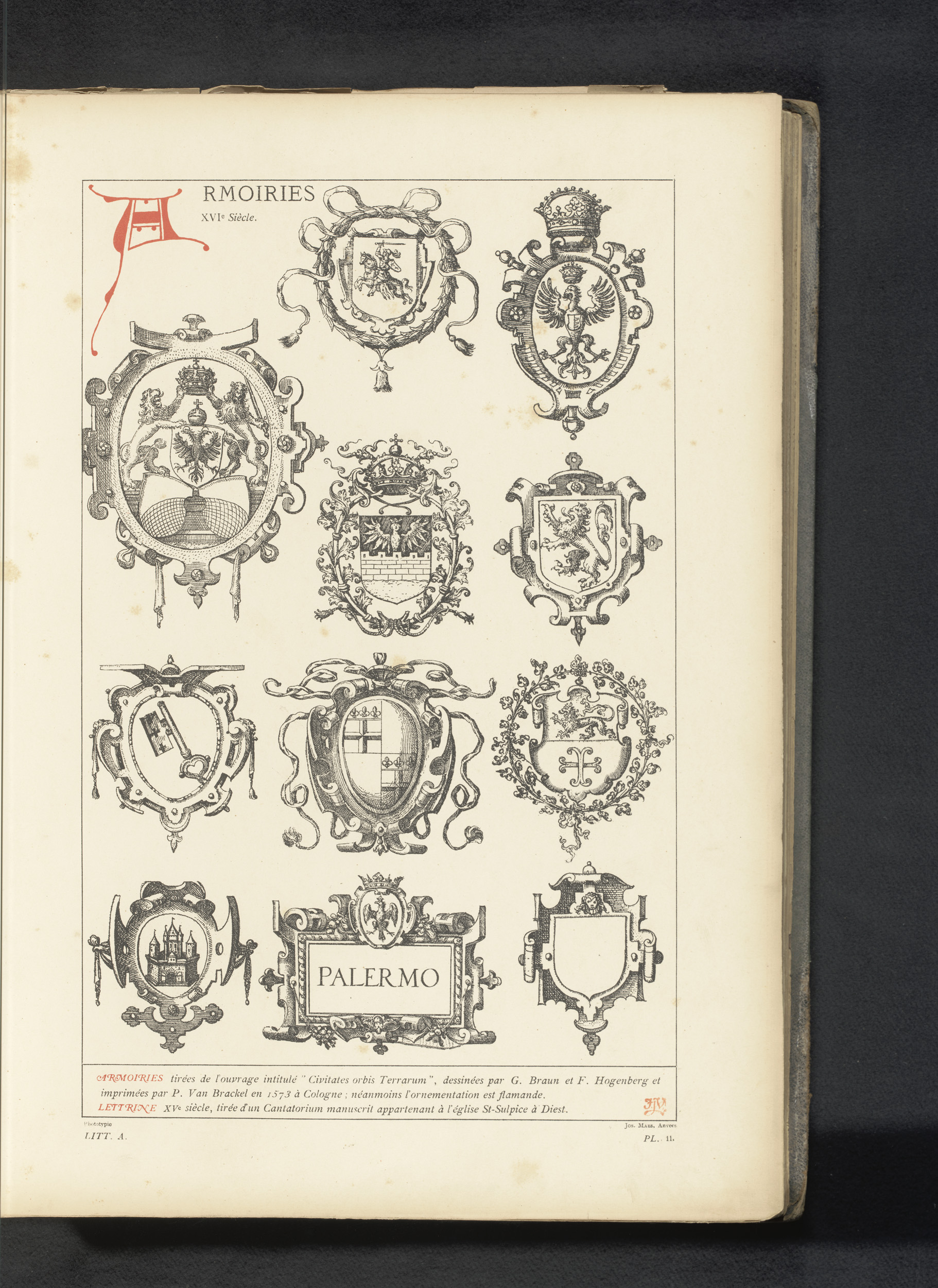 Reproductie van een titelpagina uit een atlas van Ab...