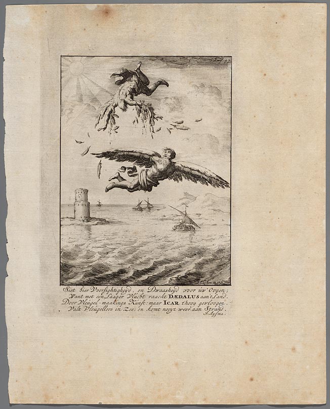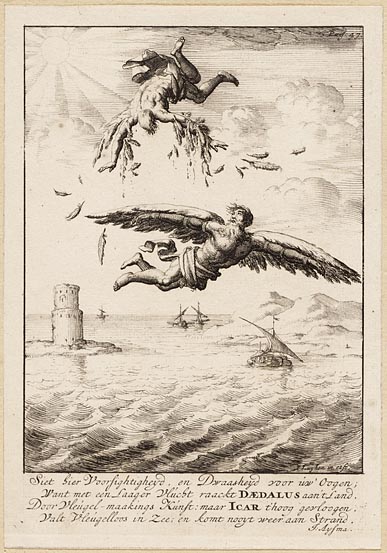 Deadalus en Icarus vliegen boven de zee