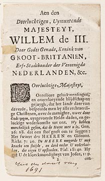 Tekstpagina met opdracht aan Willem III