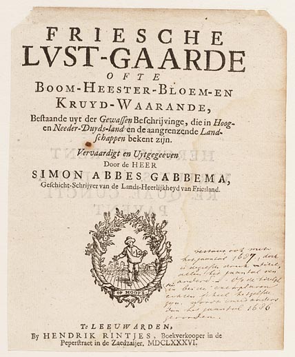 Friesche lvst-gaarde ofte boom- heester- bloem- en k...