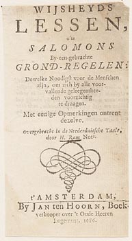 Titelpagina "Wysheyds lessen, ofte Salomons by-een-g...