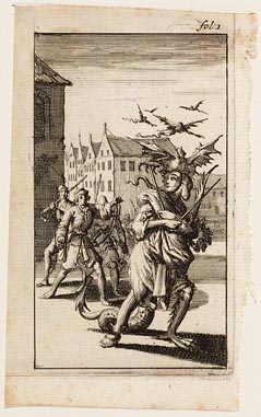 De zonde in duivelsgestalte achtervolgd door 3 mannen