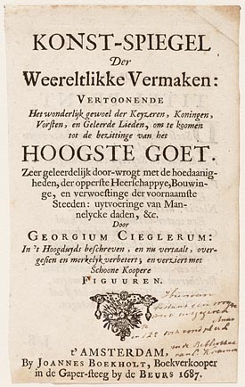 Titelpagina "Konst-spiegel der weereltlikke vermaken"