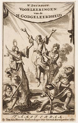 Titelprent "Voorleeringen van de Heilige Godgeleerdh...