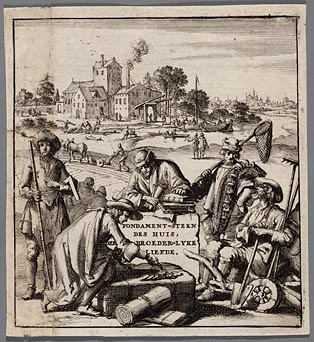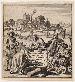 Titelprent "Fondament-steen des huis, der broeder-ly...