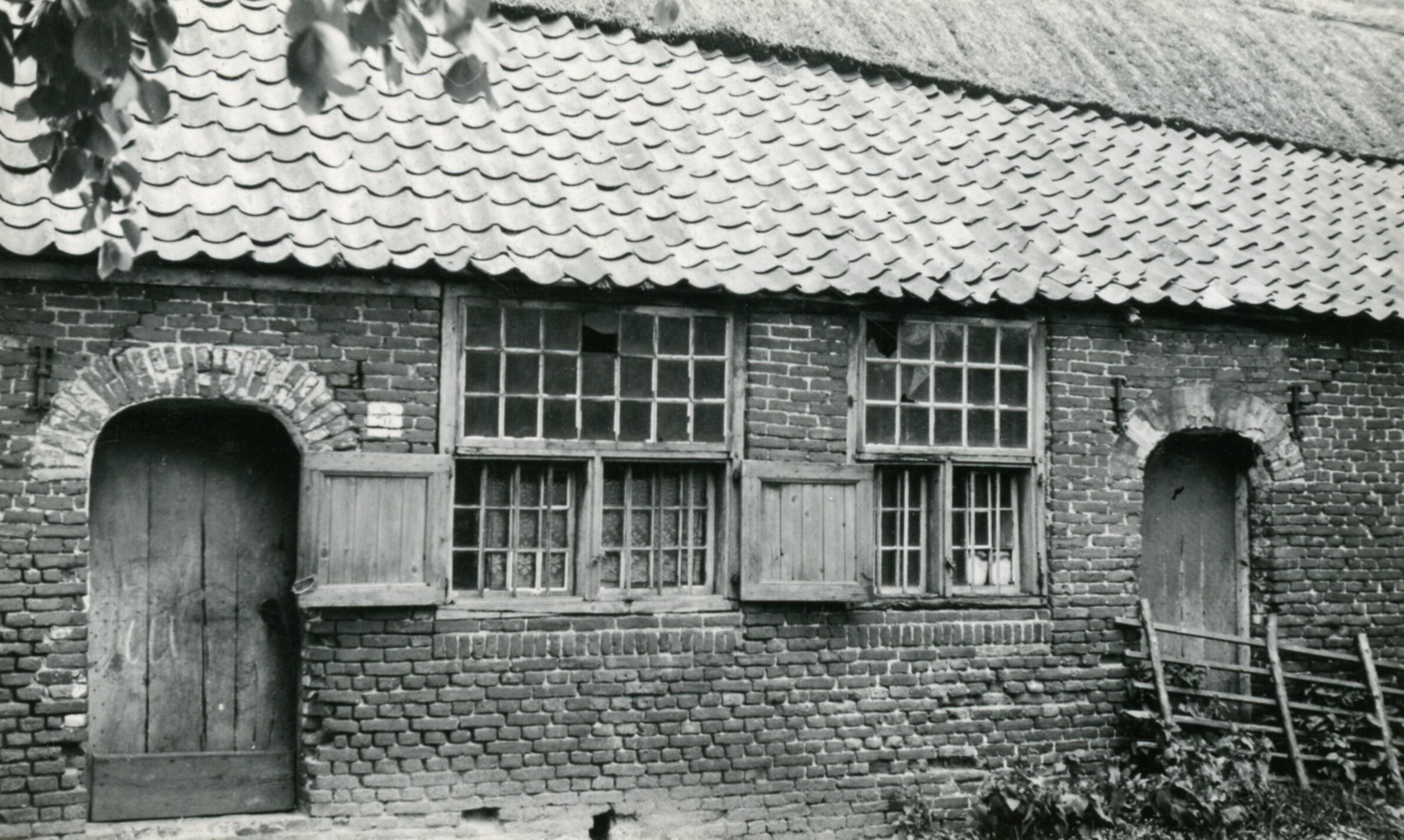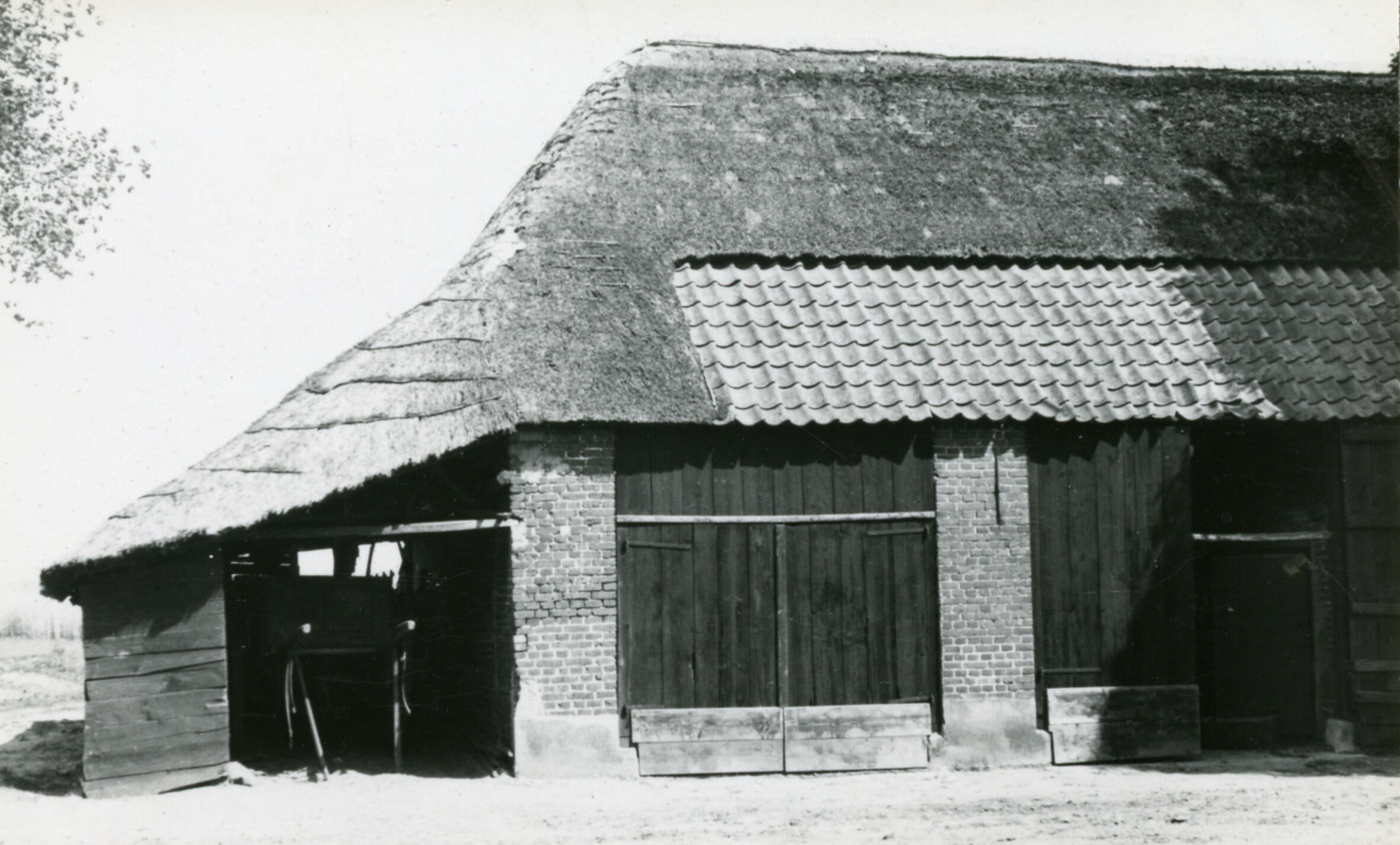 Vervallen schuur, Leende, 1934 (zwart-wit foto)