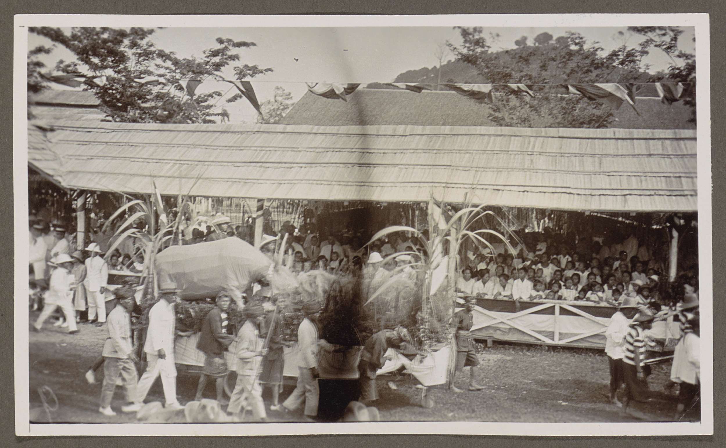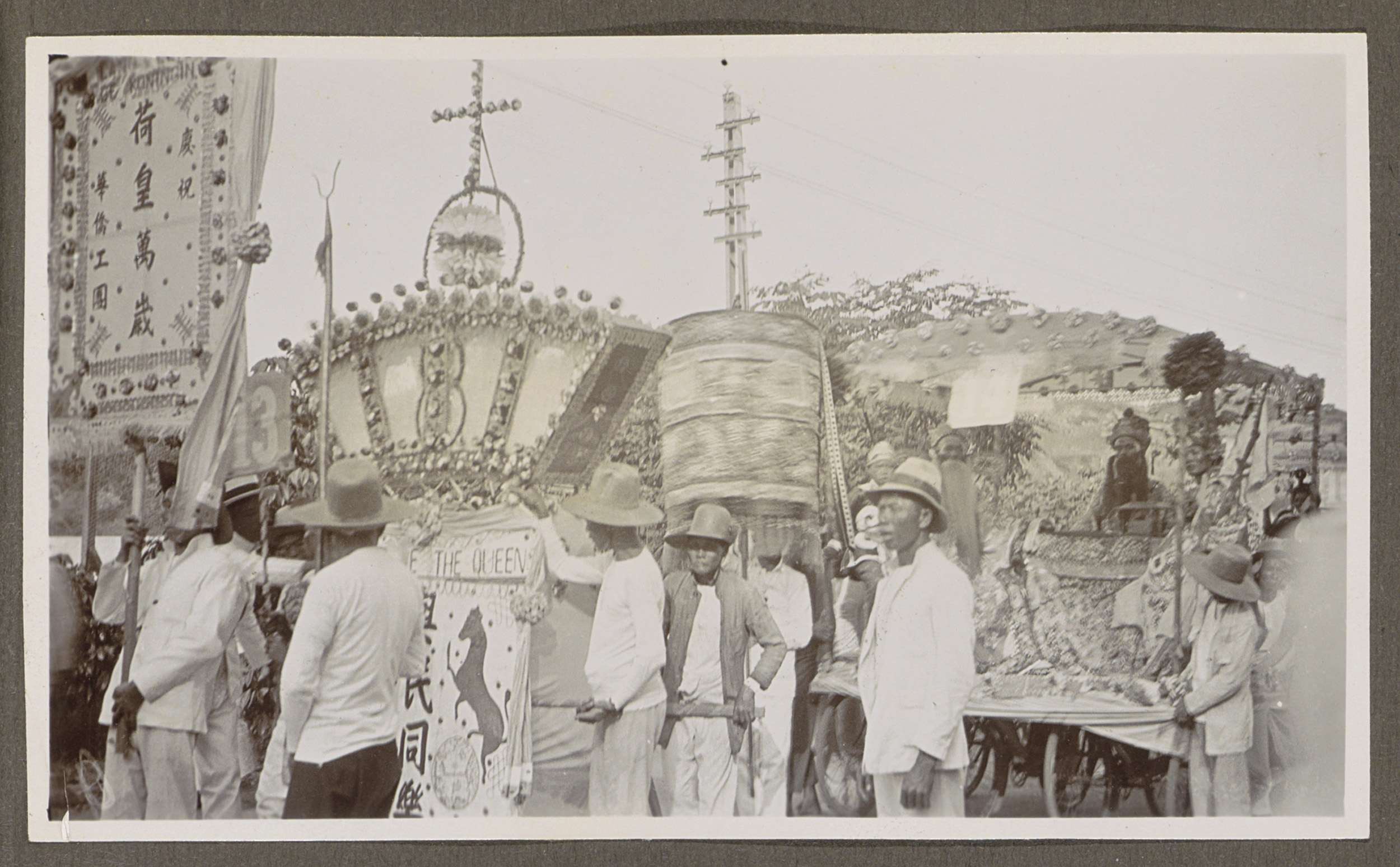 Praalwagen met een paard en (mogelijk) een leeuw voo...