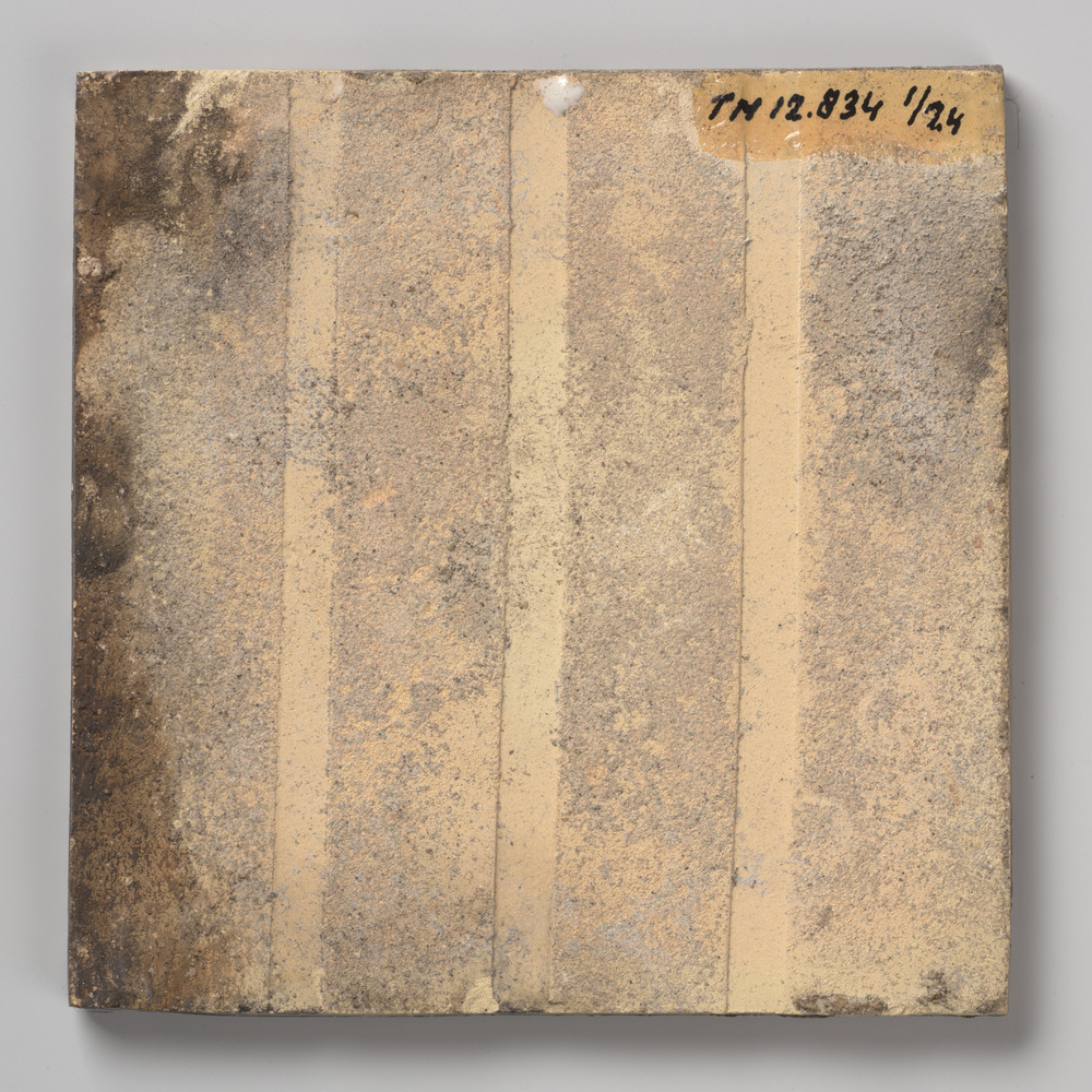 Tegel van keramiek met tinglazuur, voorstellende: or...