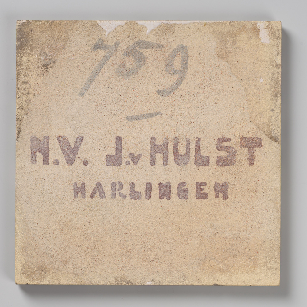 Tegel van keramiek met tinglazuur, voorstellende: gr...