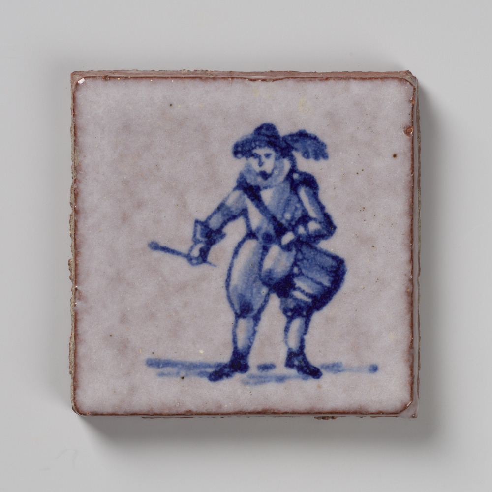 tegel van aardewerk met tinglazuur, voorstellende: k...