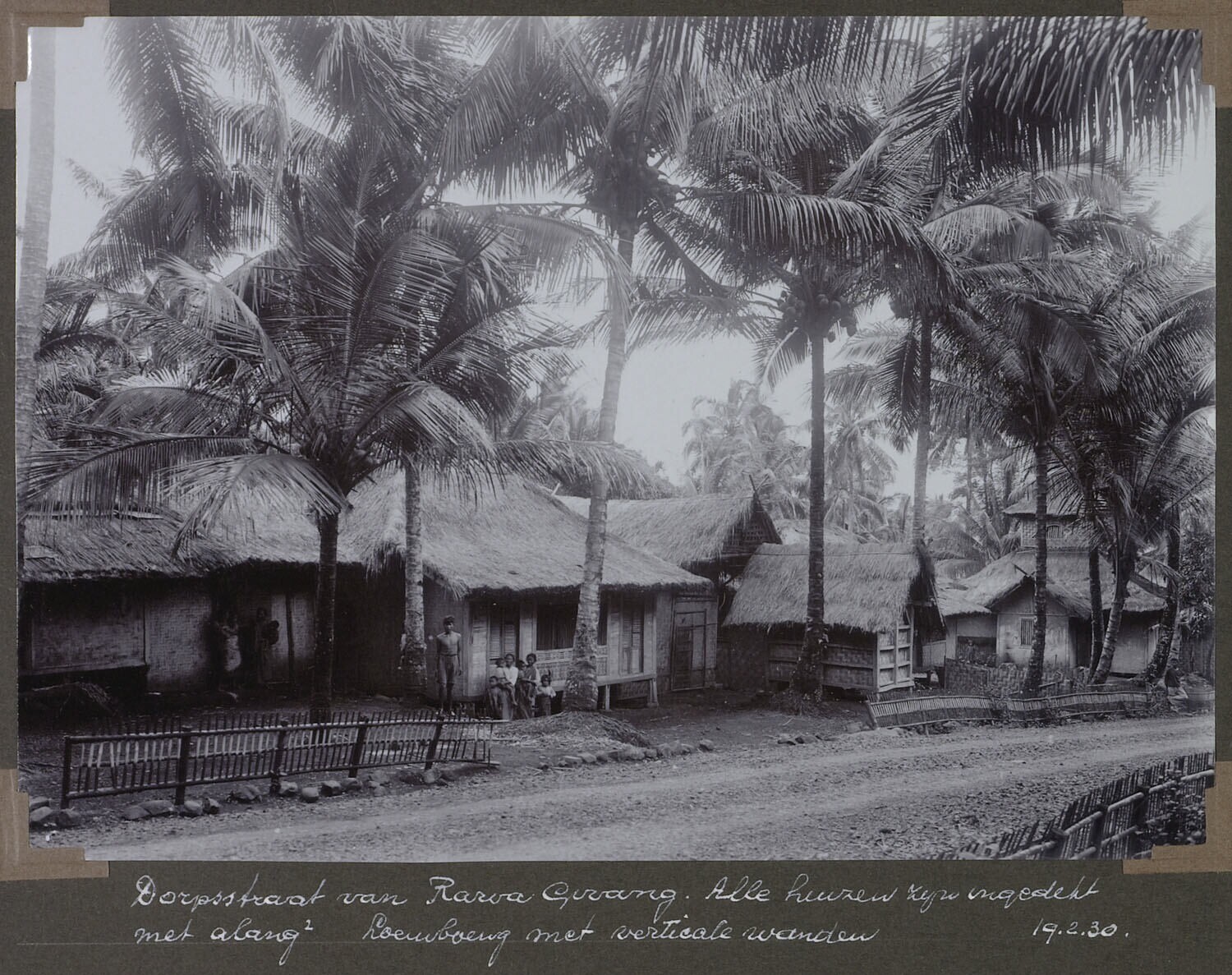 'Dorpsstraat van Rawa Girang. Alle huizen zijn inged...