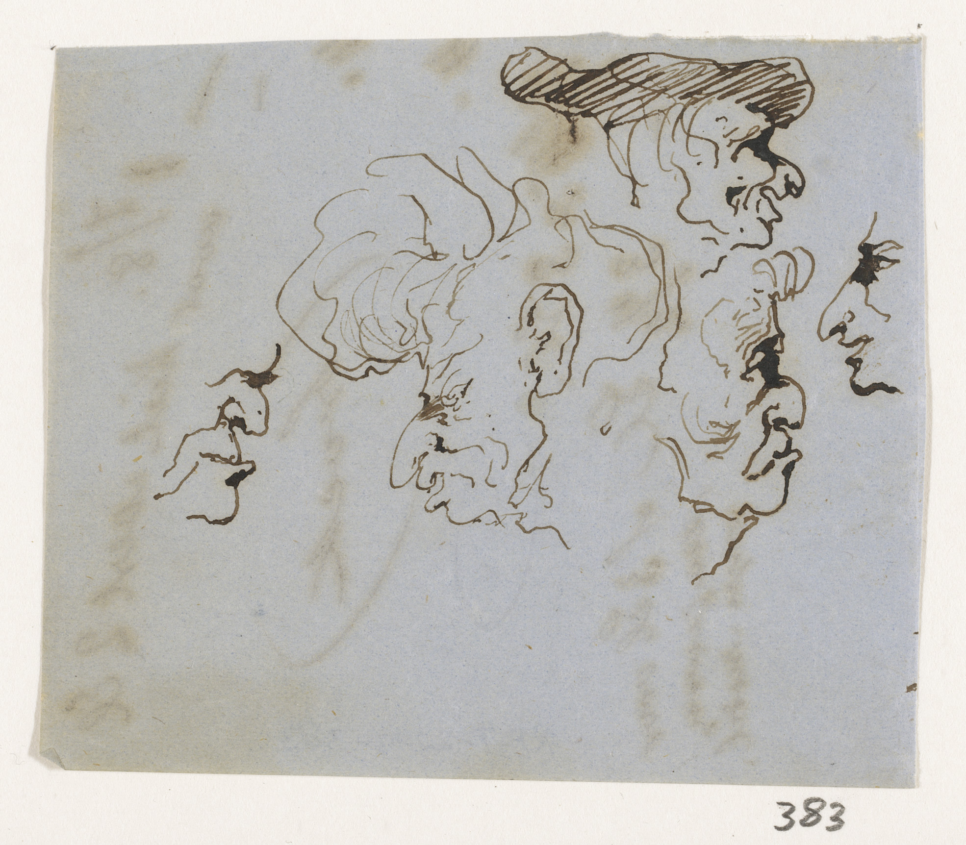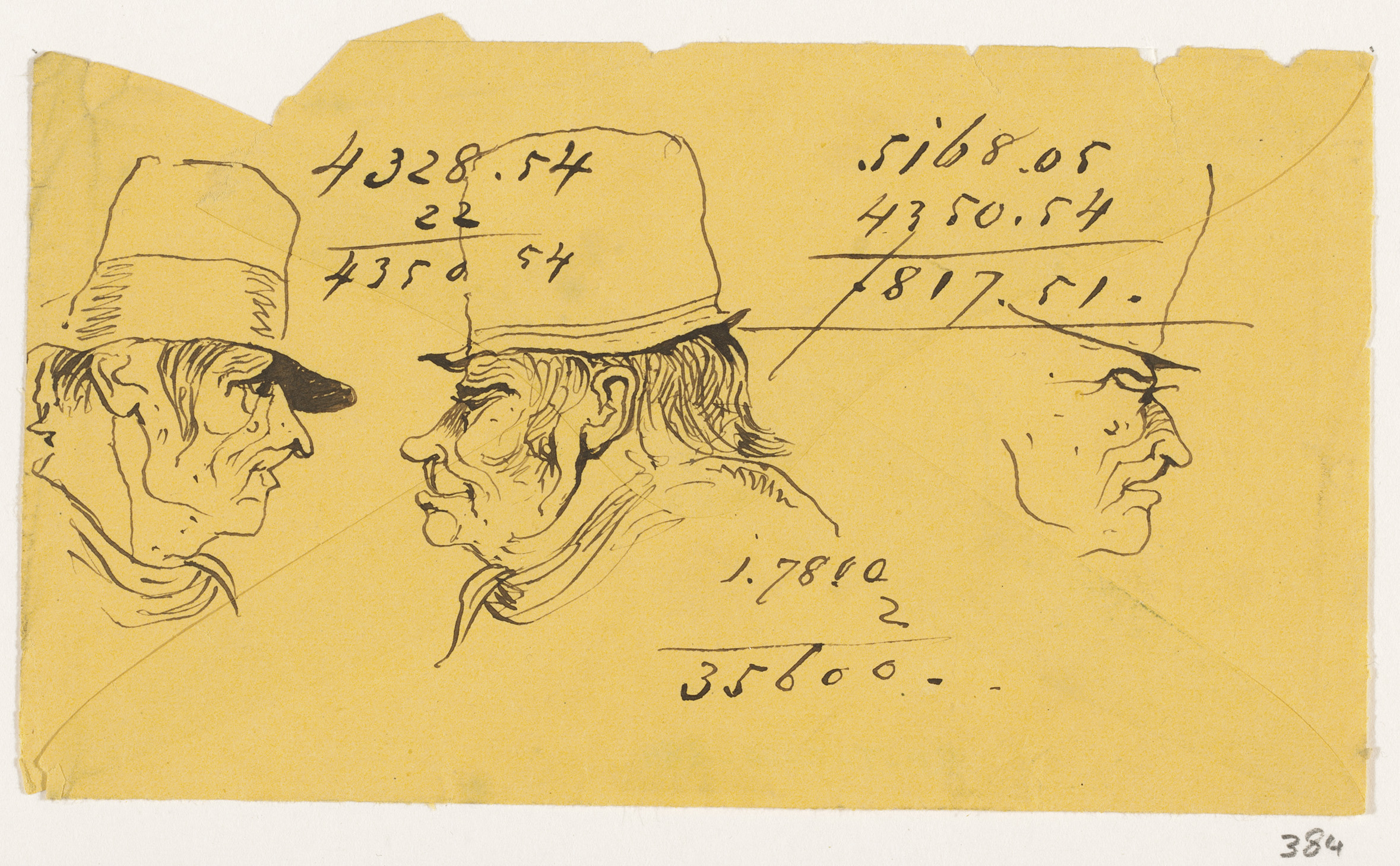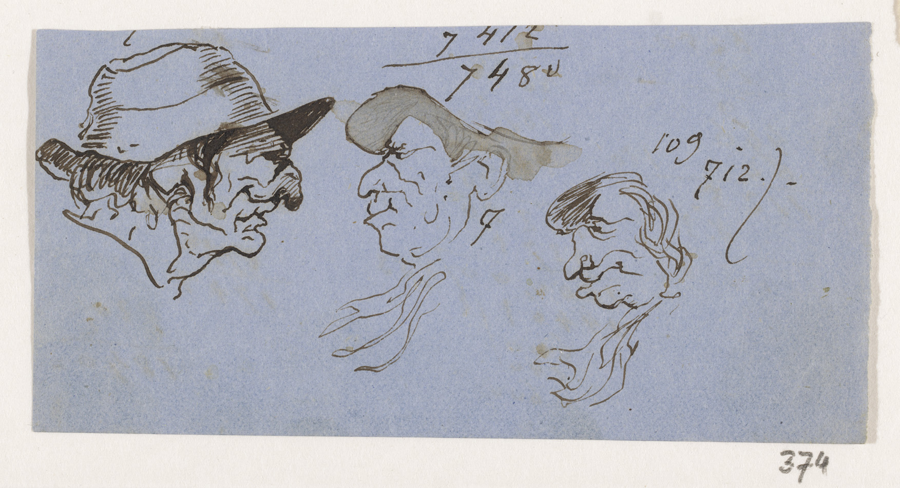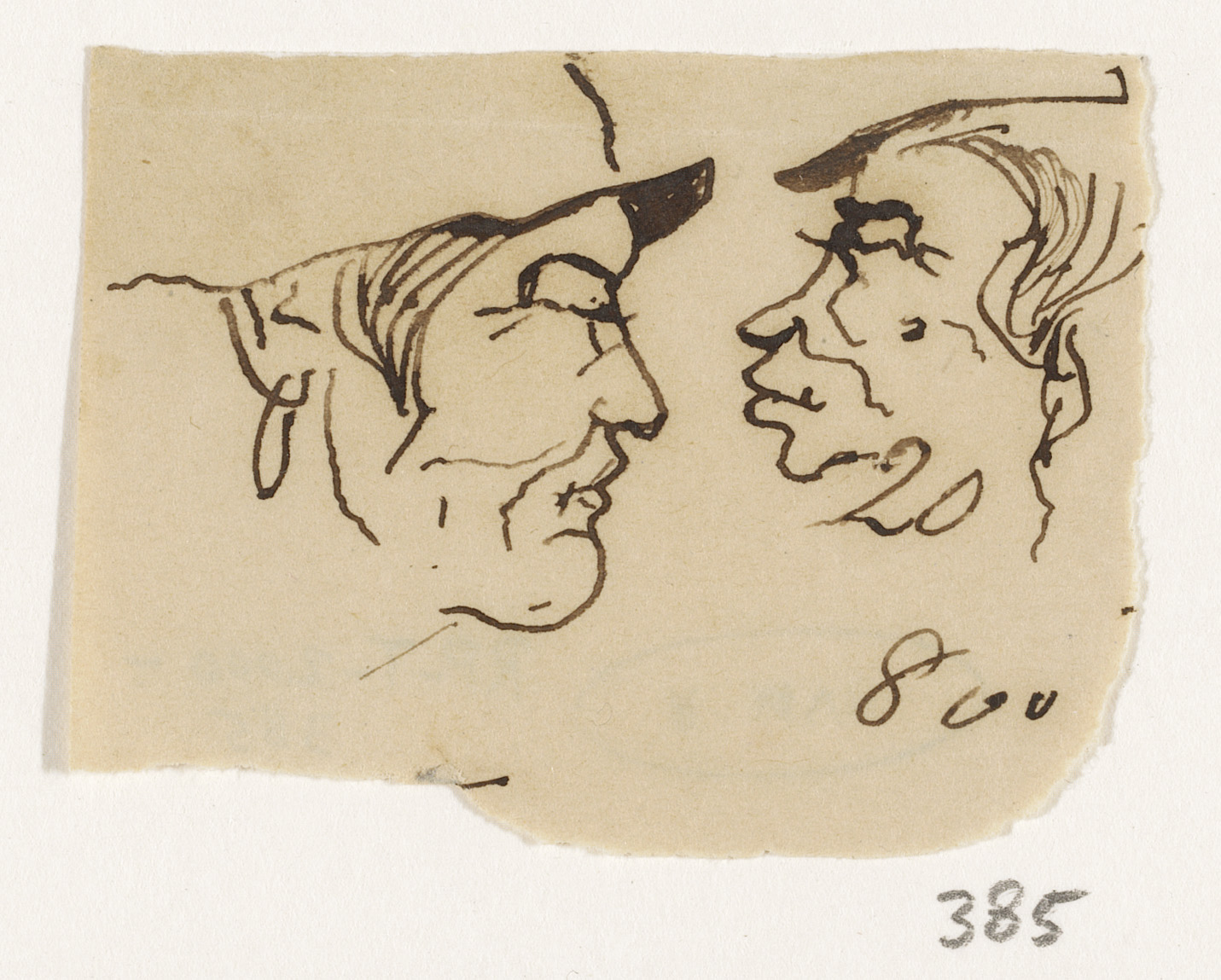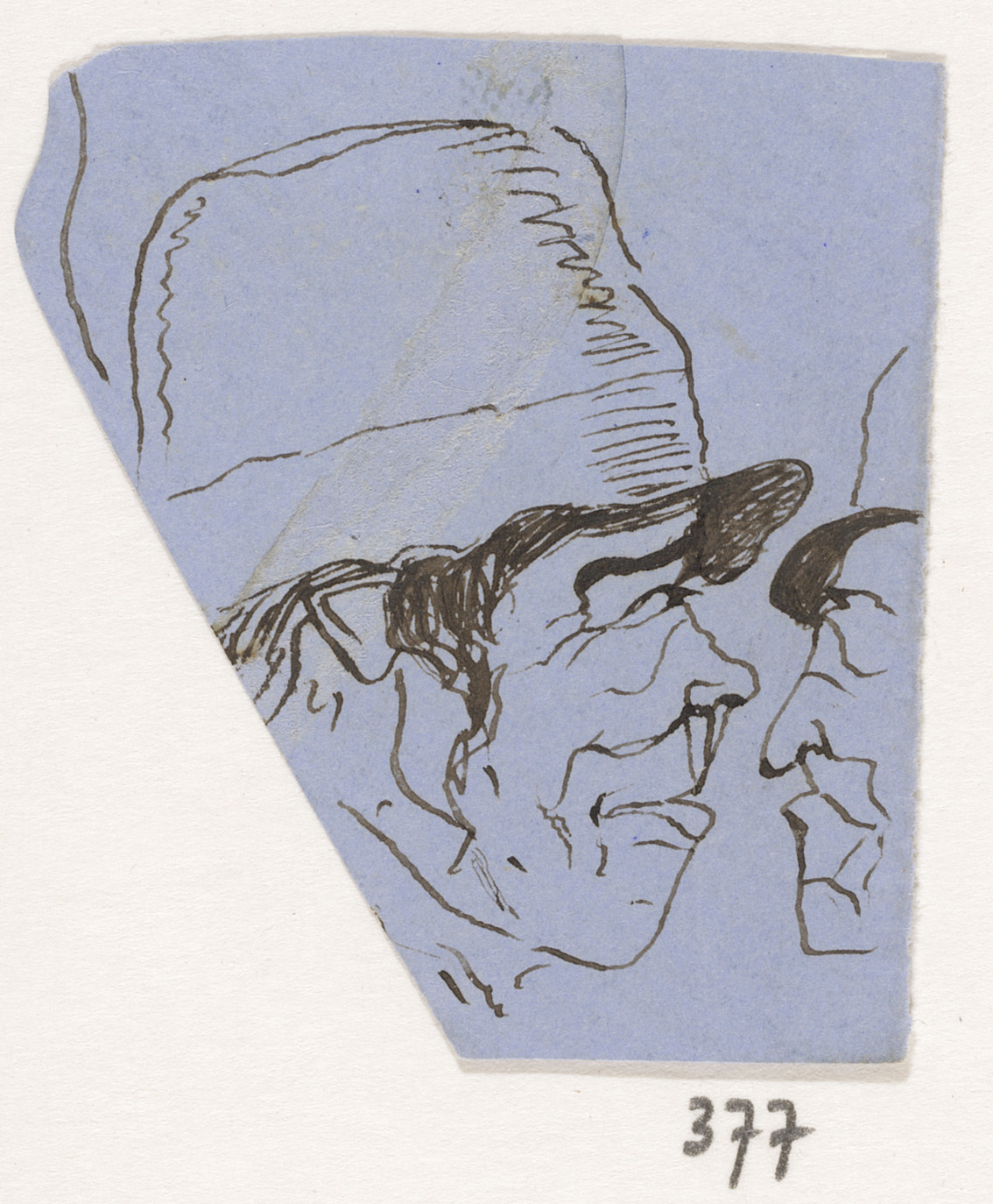 Twee schetsen van man met lang haar en hoed