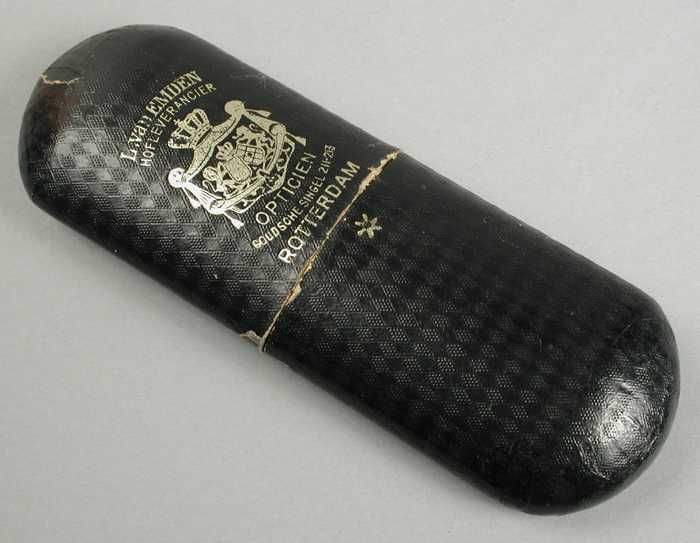 Brillenkoker van karton beplakt met zwart reliëf pap...