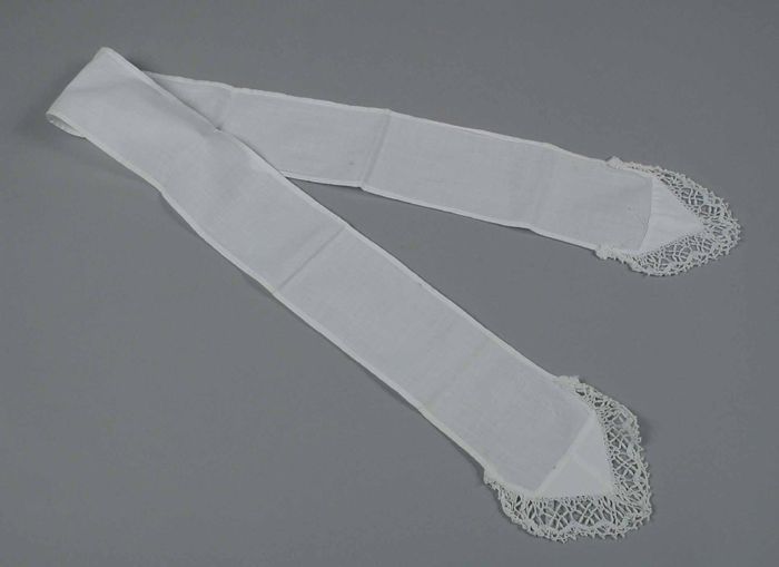 Smalle rechte navelband van wit katoen, uiteinden in...