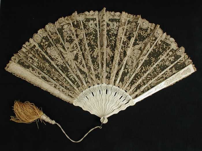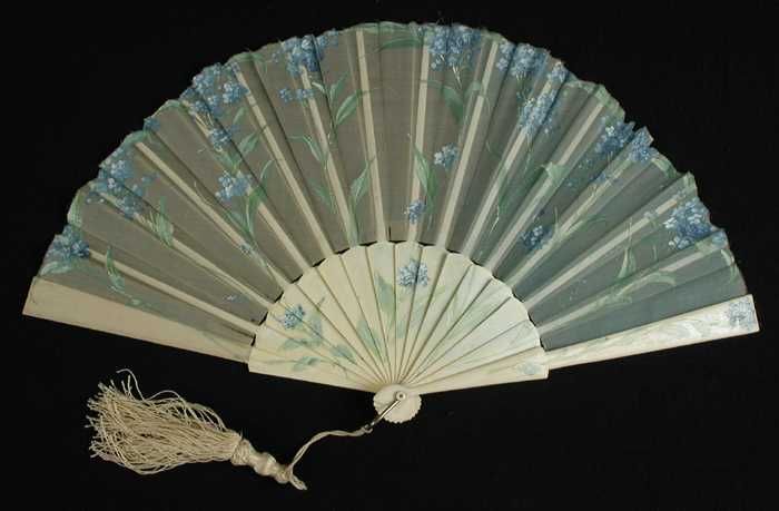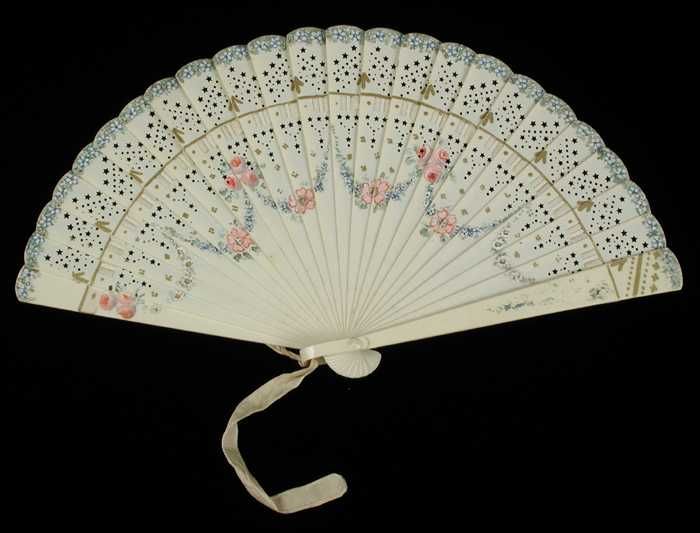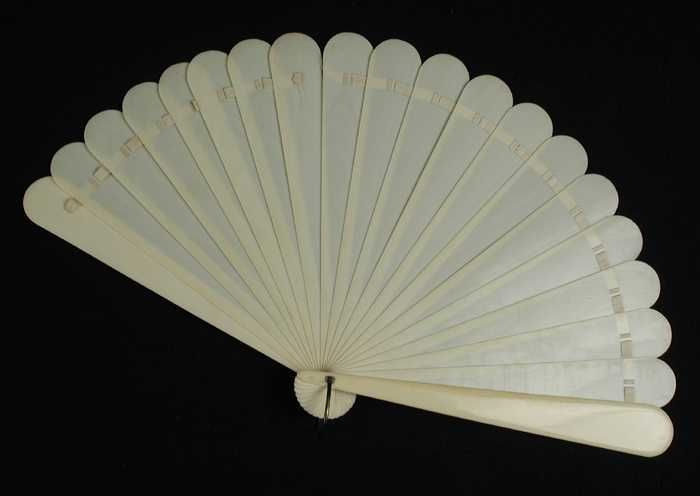 Vouwwaaier, benen van uitgezaagd ivoor, waaierblad v...