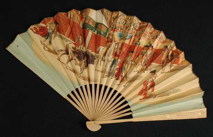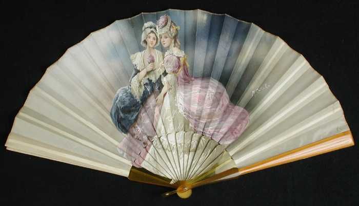 Vouwwaaier met veelkleurige beschildering van twee j...