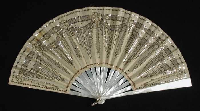 Vouwwaaier met benen van paarlemoer, waaierblad van ...