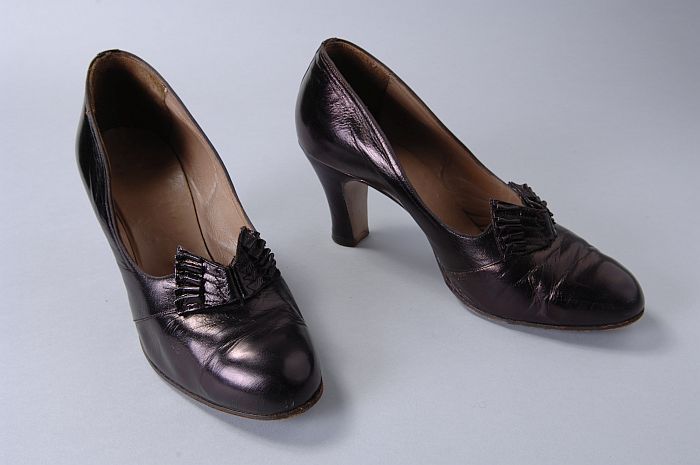 Leren pumps in auberginekleur met metaalglans, ronde...