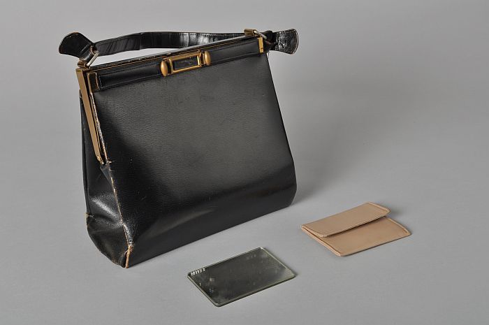 Zwart leren handtas met goudkleurige beugelsluiting,...