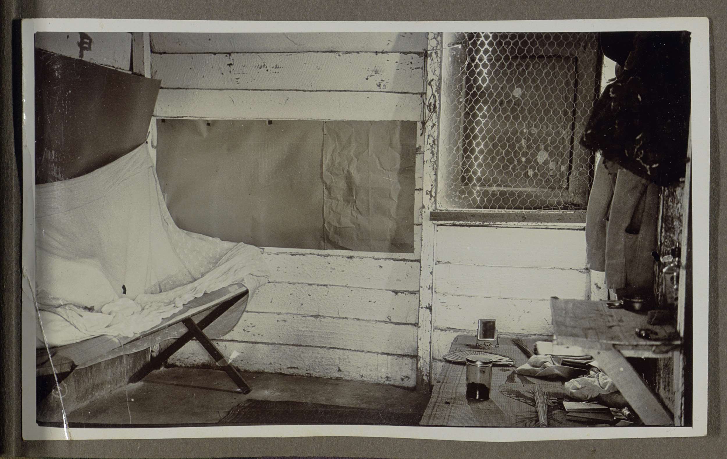 Ruimte met gebruiksvoorwerpen en kleding, mogelijk e...