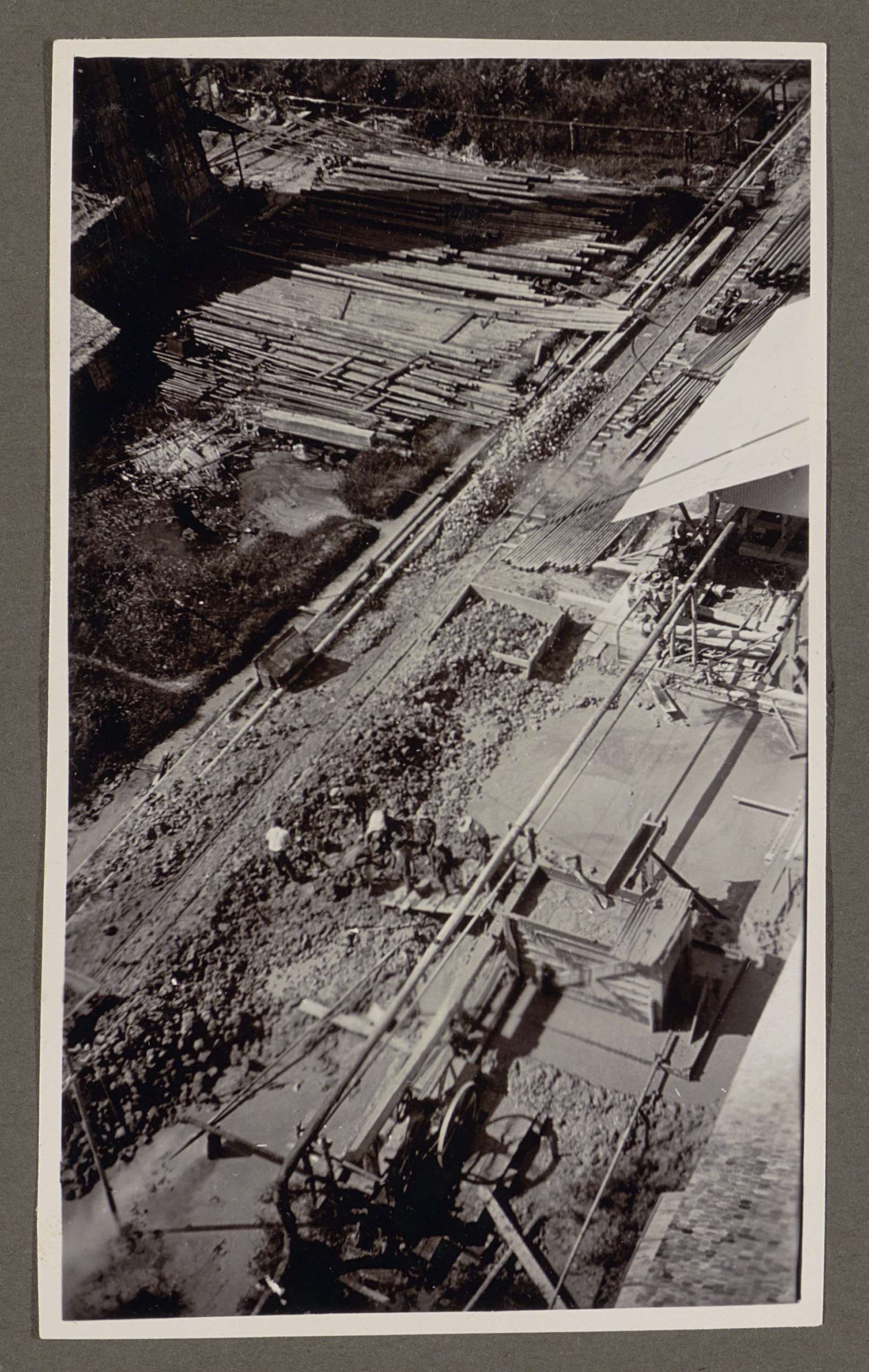 Houtopslag en apparatuur, van bovenaf gezien