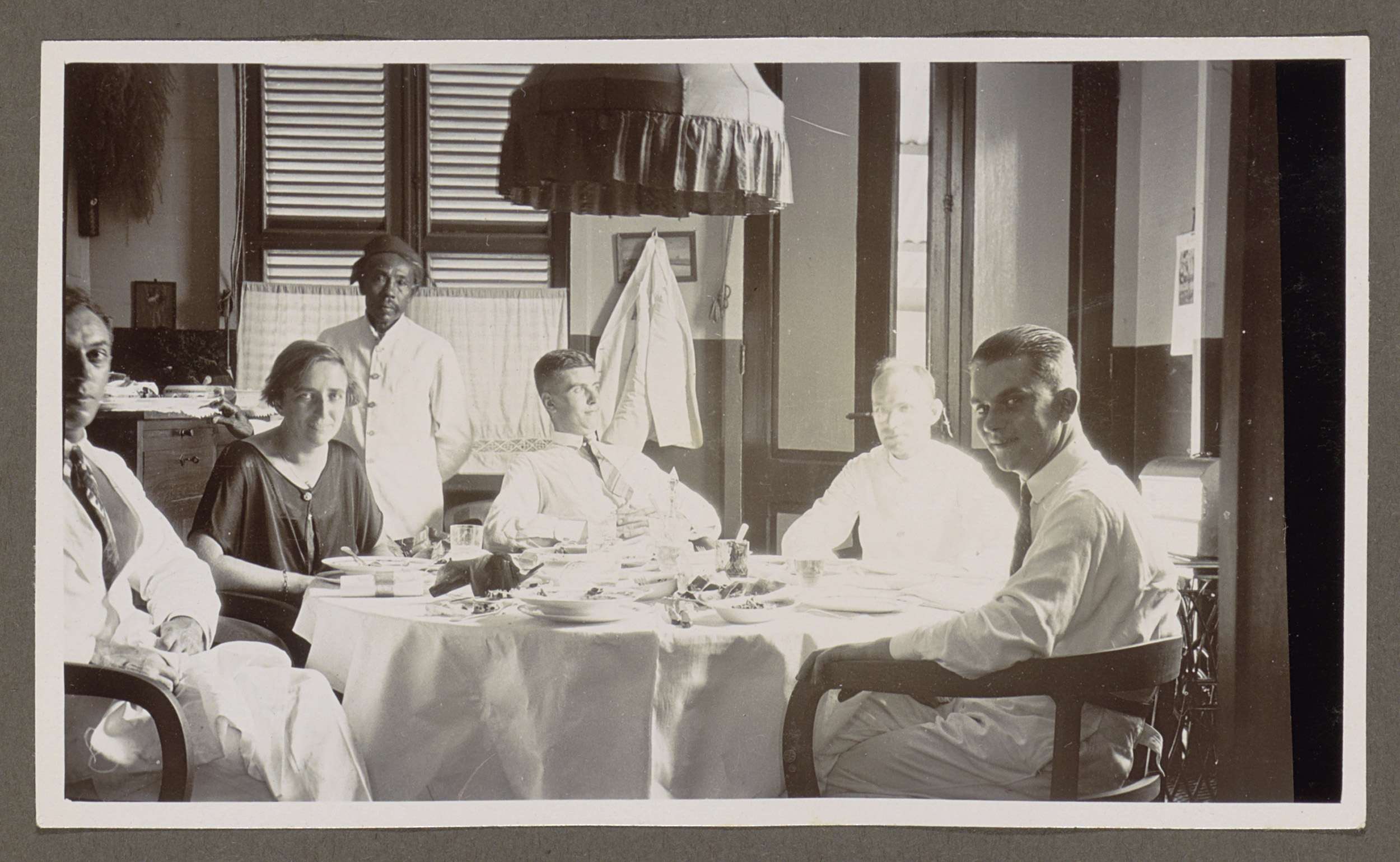 Indonesische bediende, Europese mannen en een vrouw ...