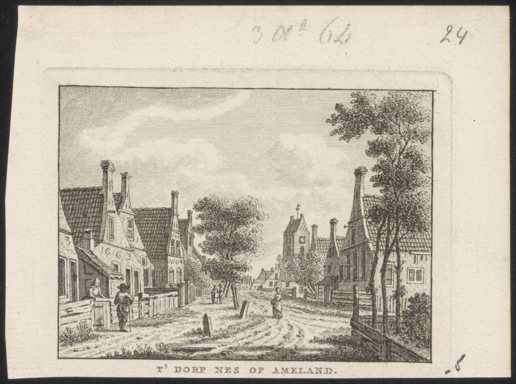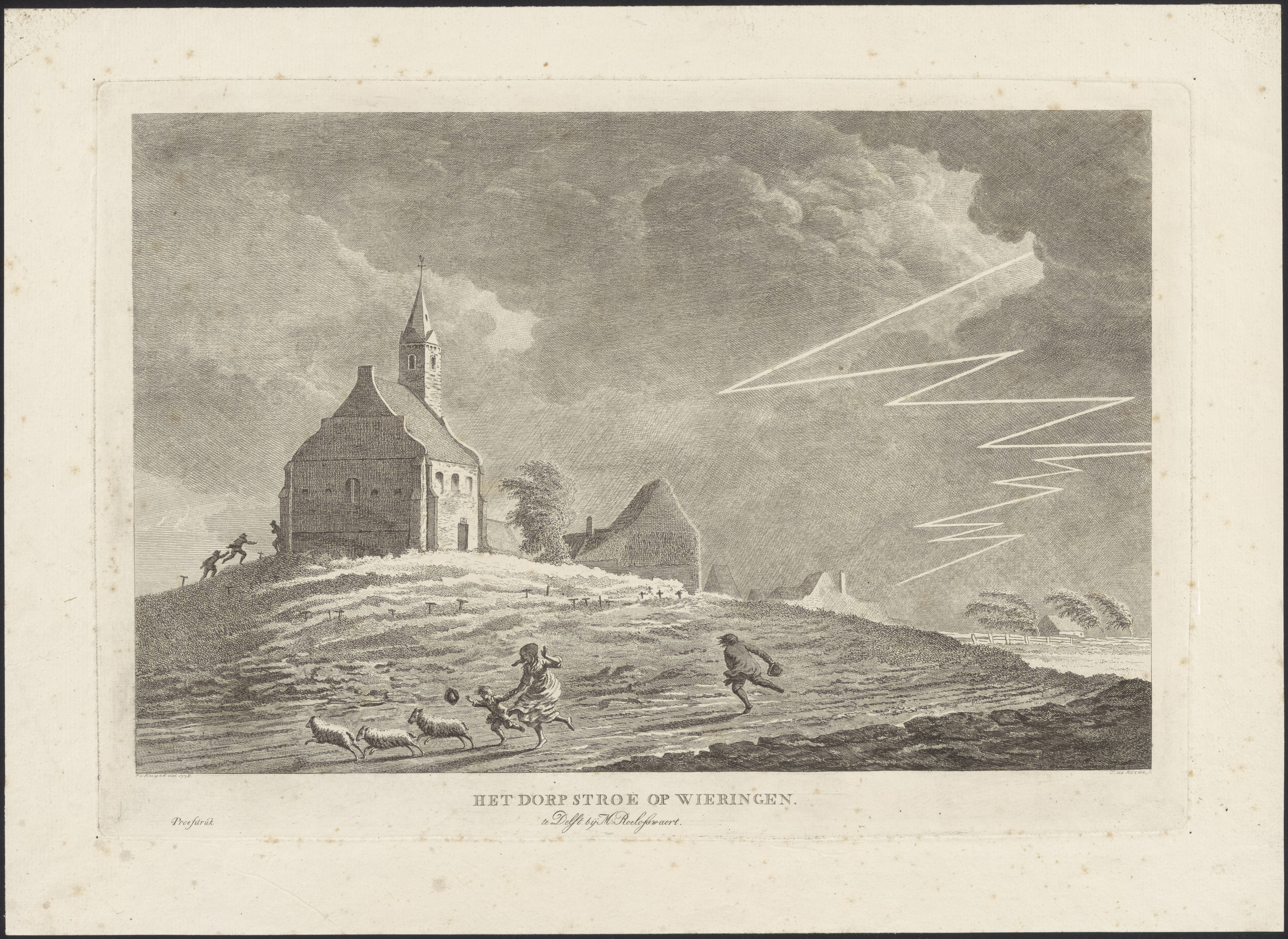 Gezicht van de dykbreuk aan den douk op Texel in de ...