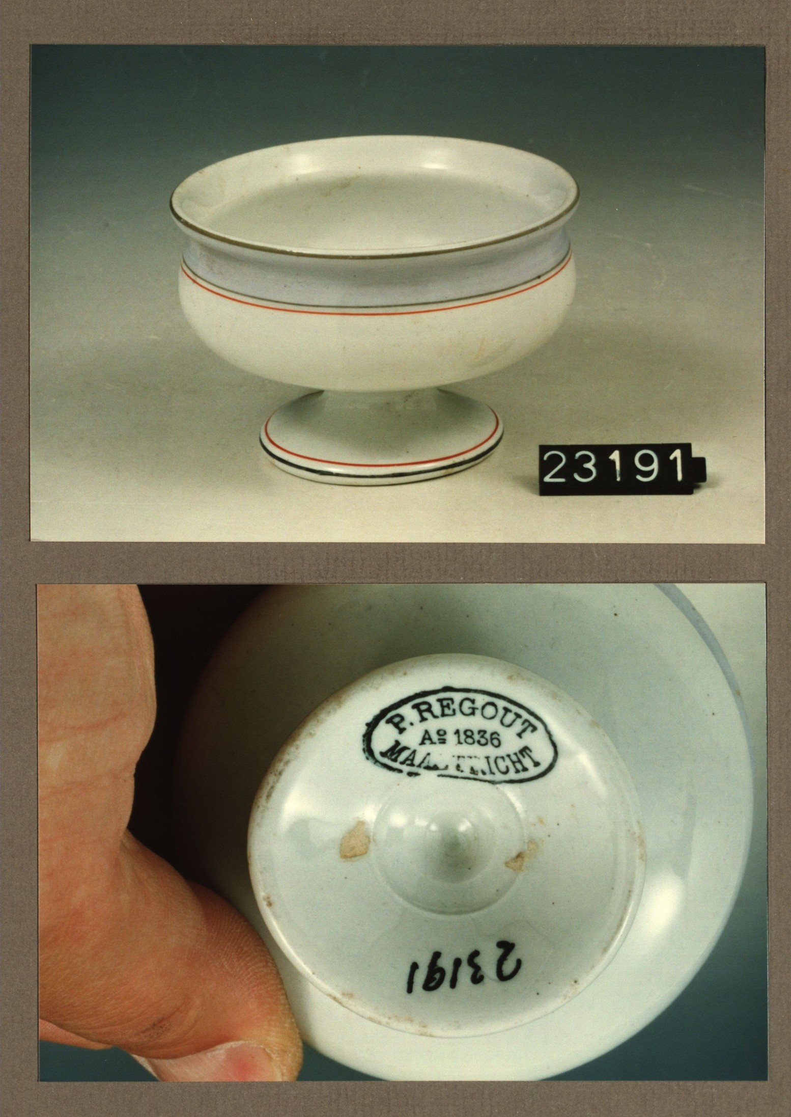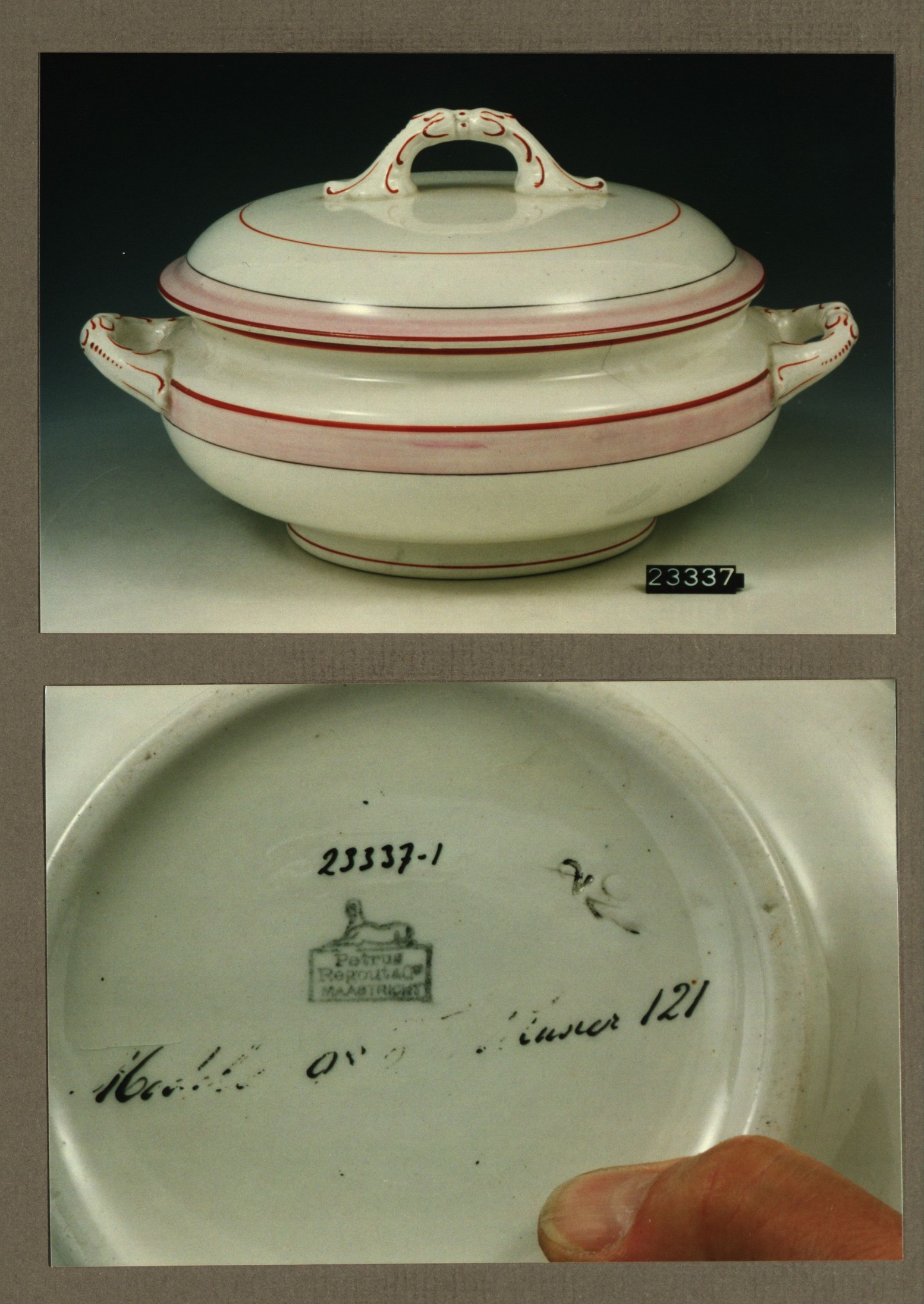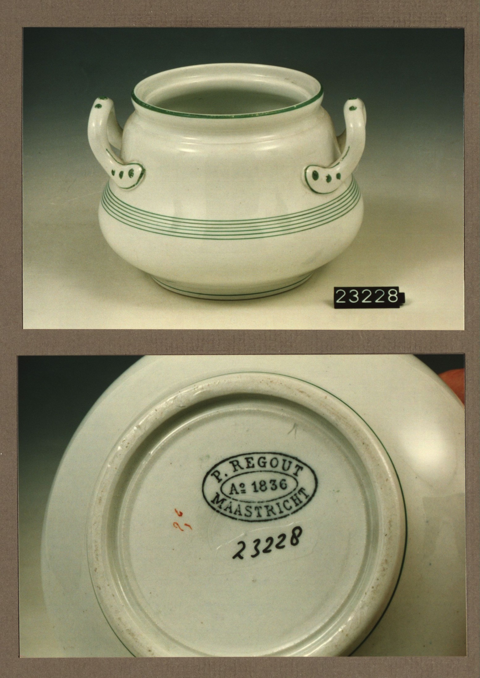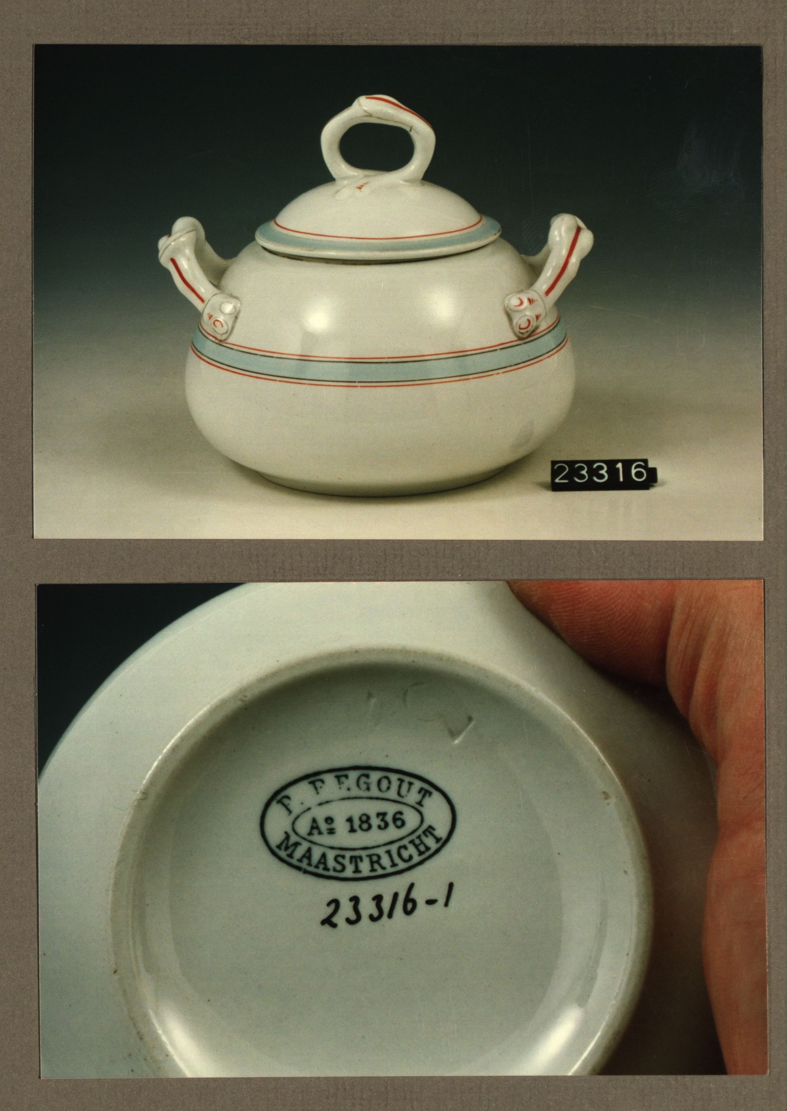 Mosterdpot, model Porcelein met decor 96