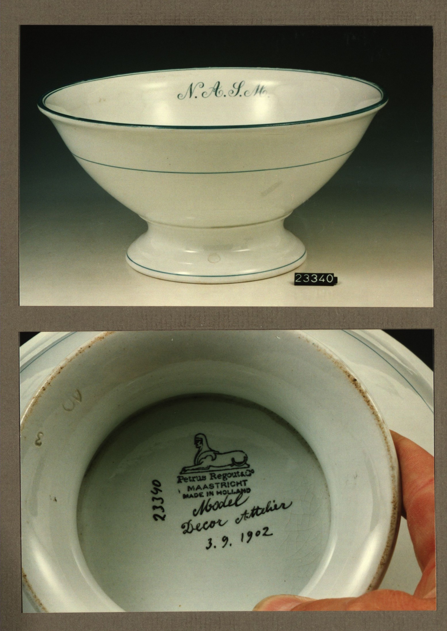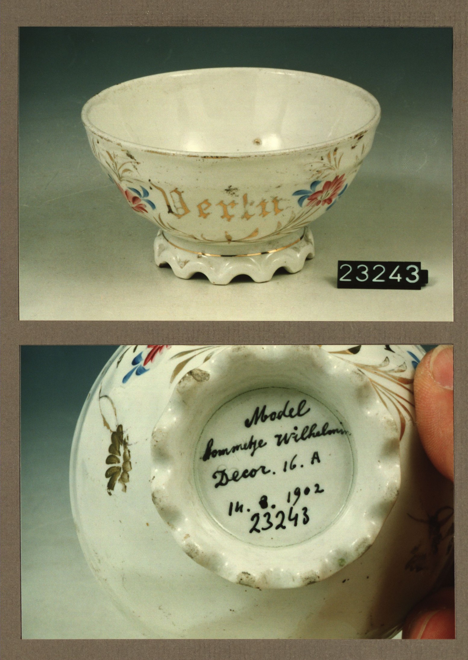 Kom met opschrift, model Wilhelmina met decor 16A Vertu