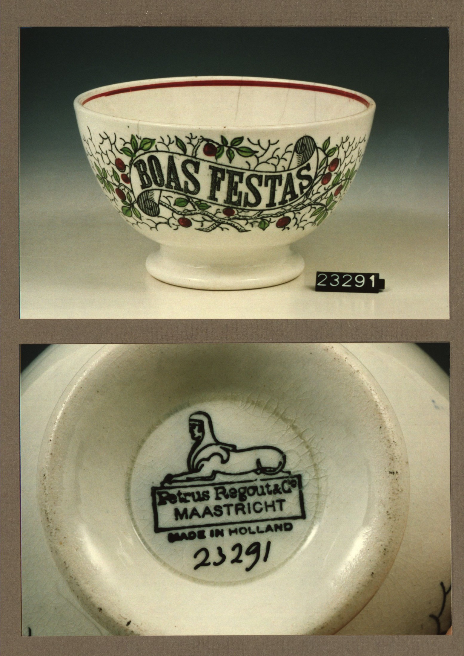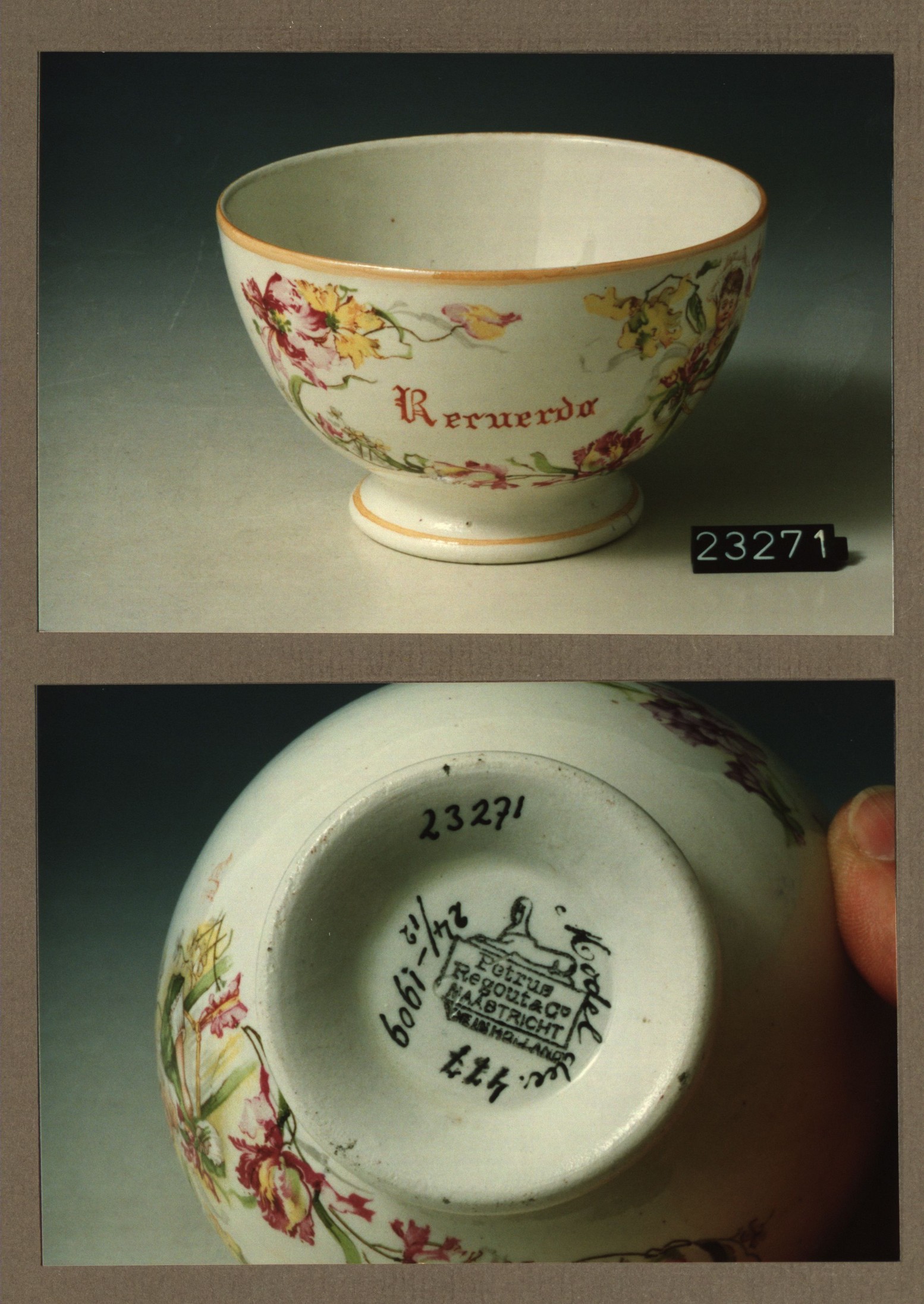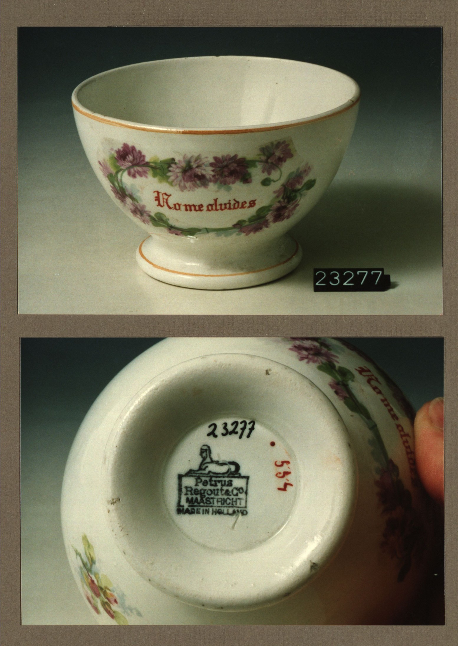 Kom met opschrift, model Gewoon met decor 477 Reuerda
