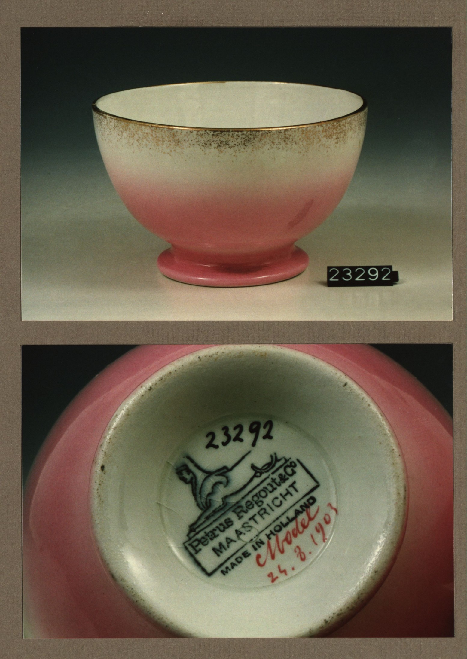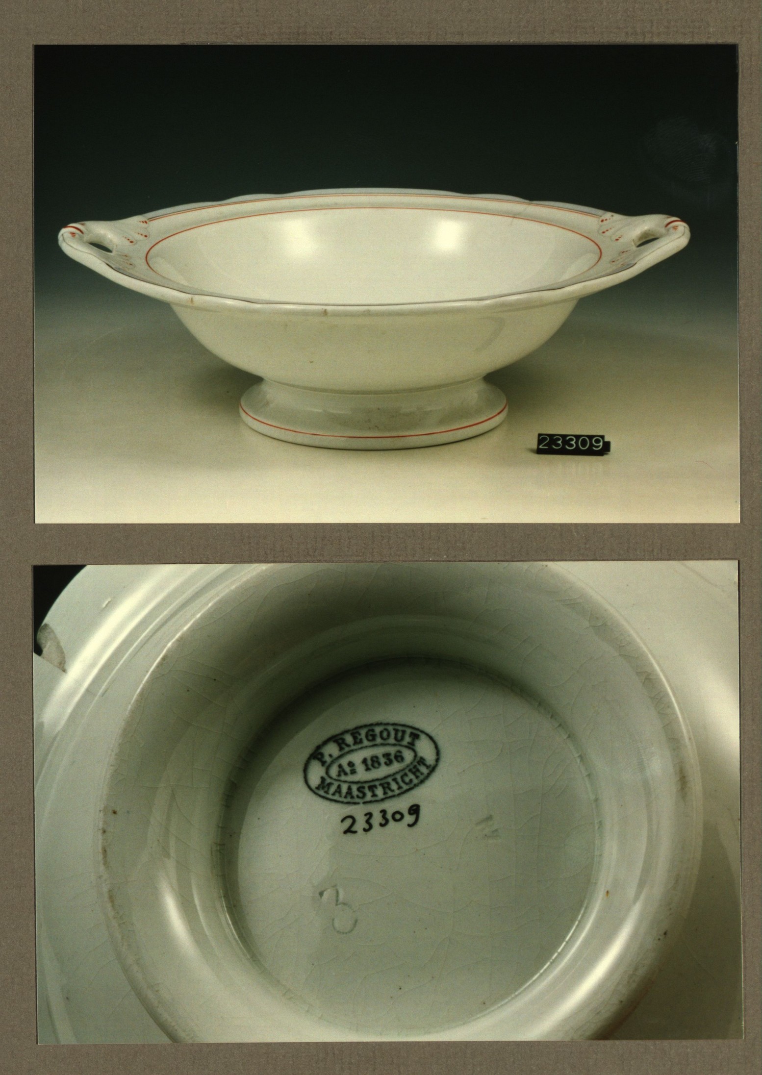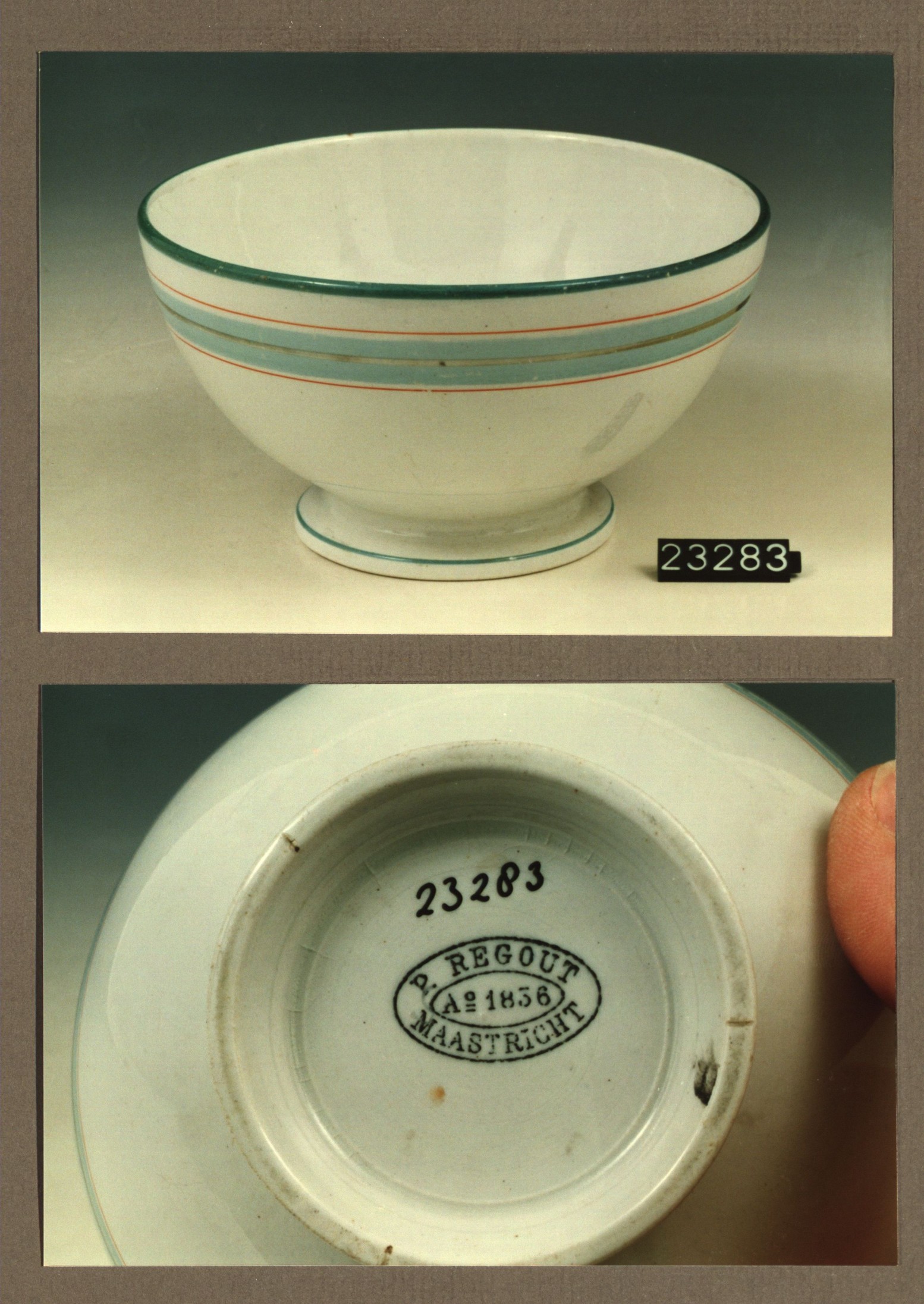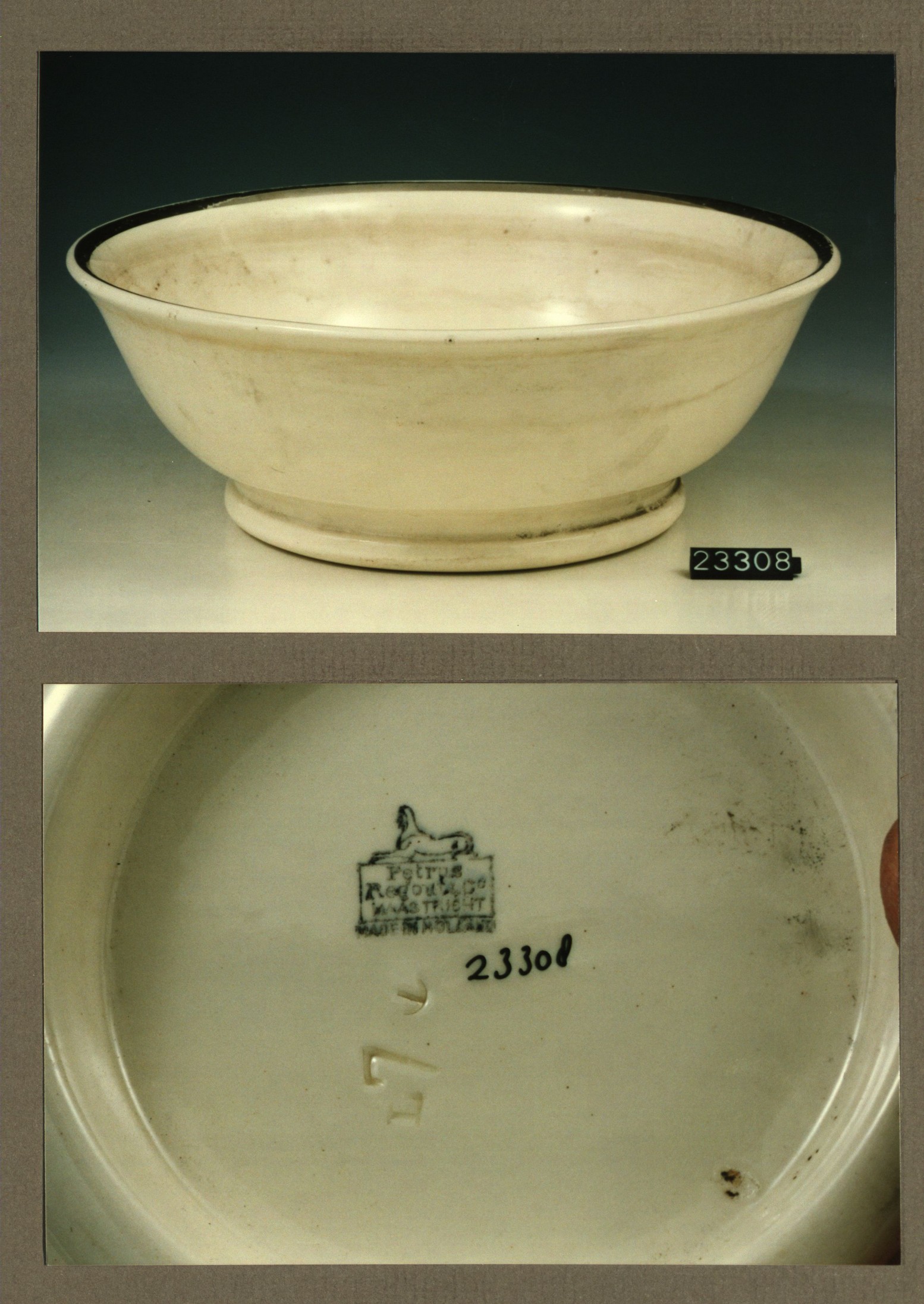 Kom met opschrift, model Gewoon met decor 477 Reuerda