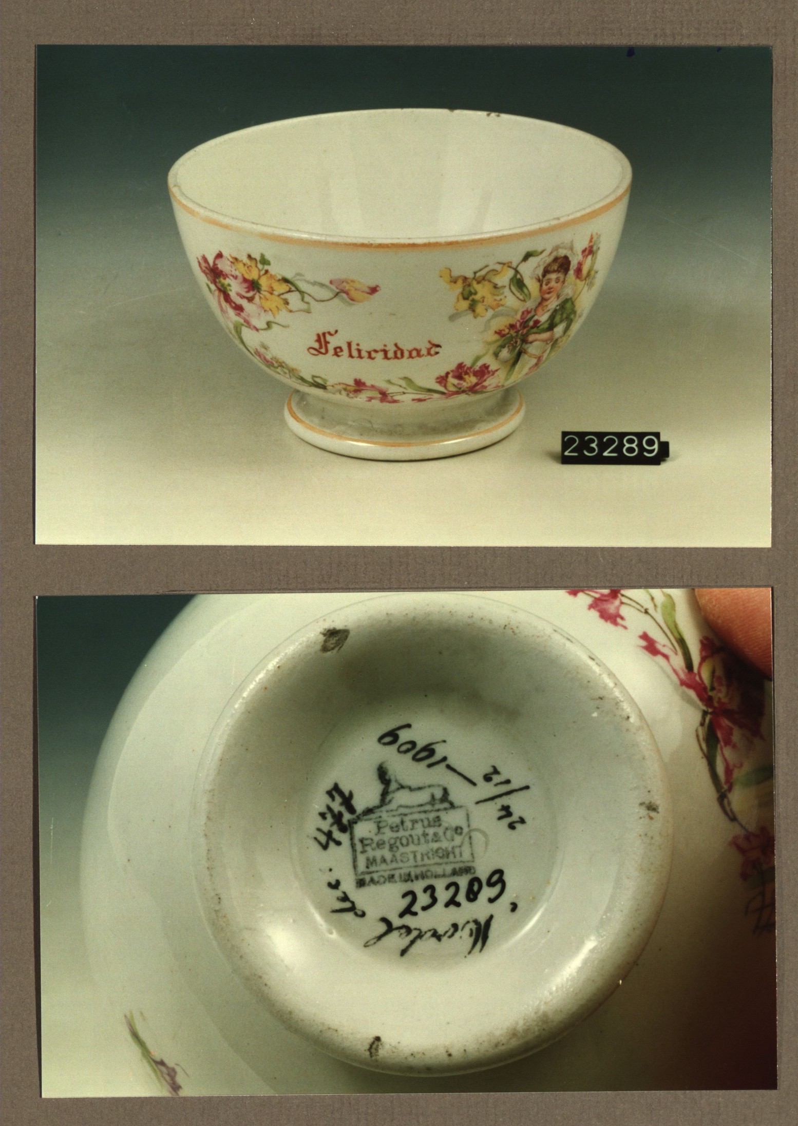 Kom met opschrift, model Gewoon met decor 477 Felicidat