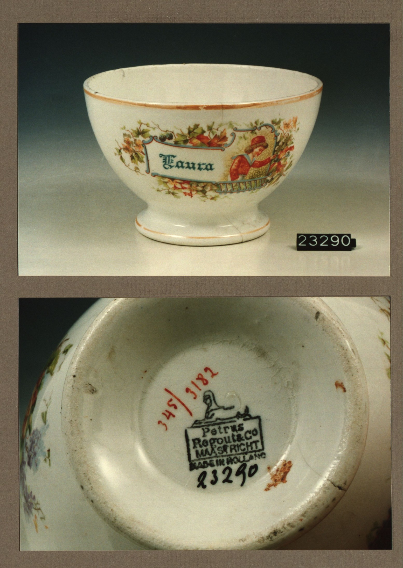 Kom met opschrift, model Gewoon met decor 3753 Elisa